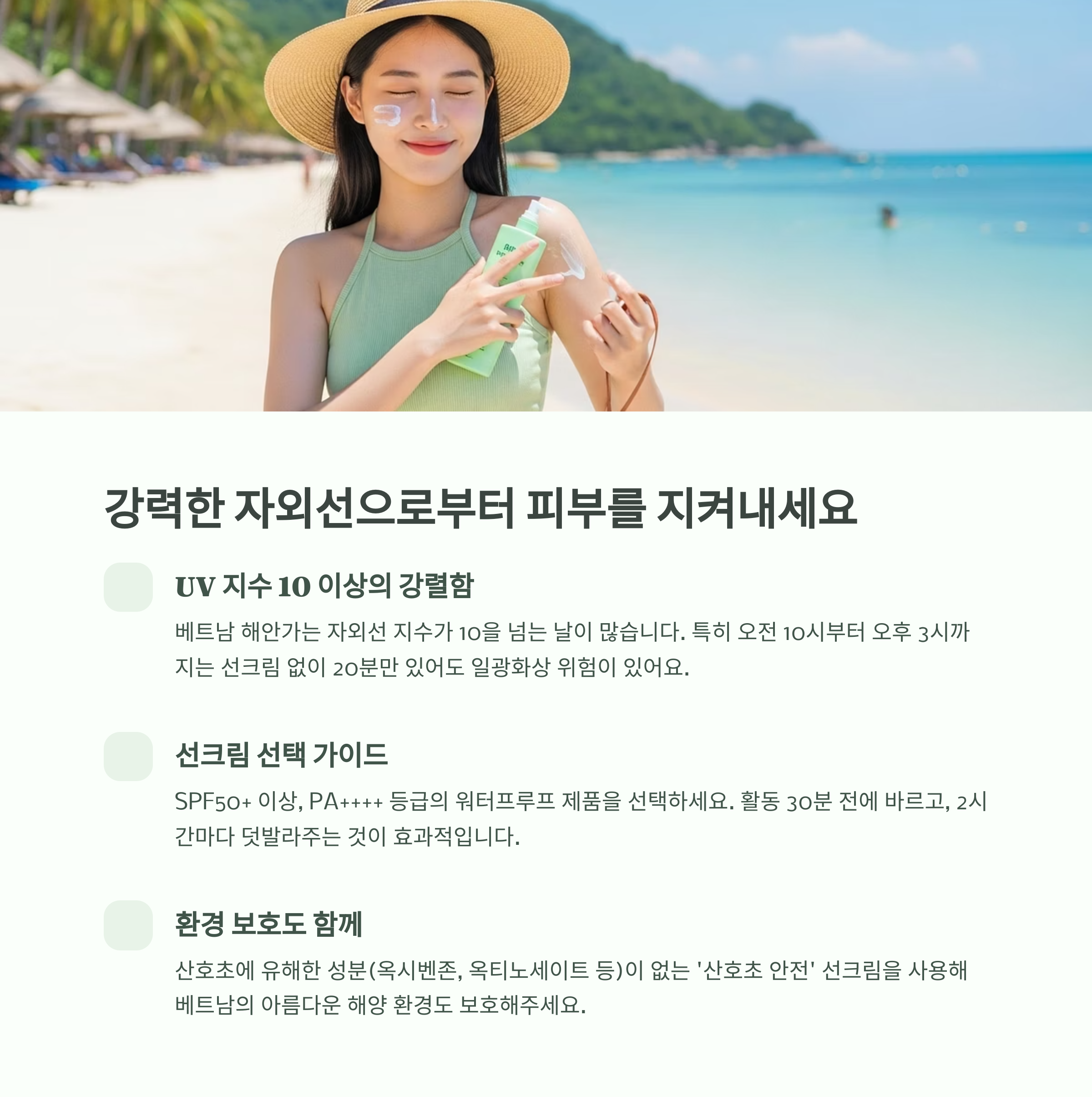 베트남 해안가는 UV 지수가 10 이상인 날이 많아요.