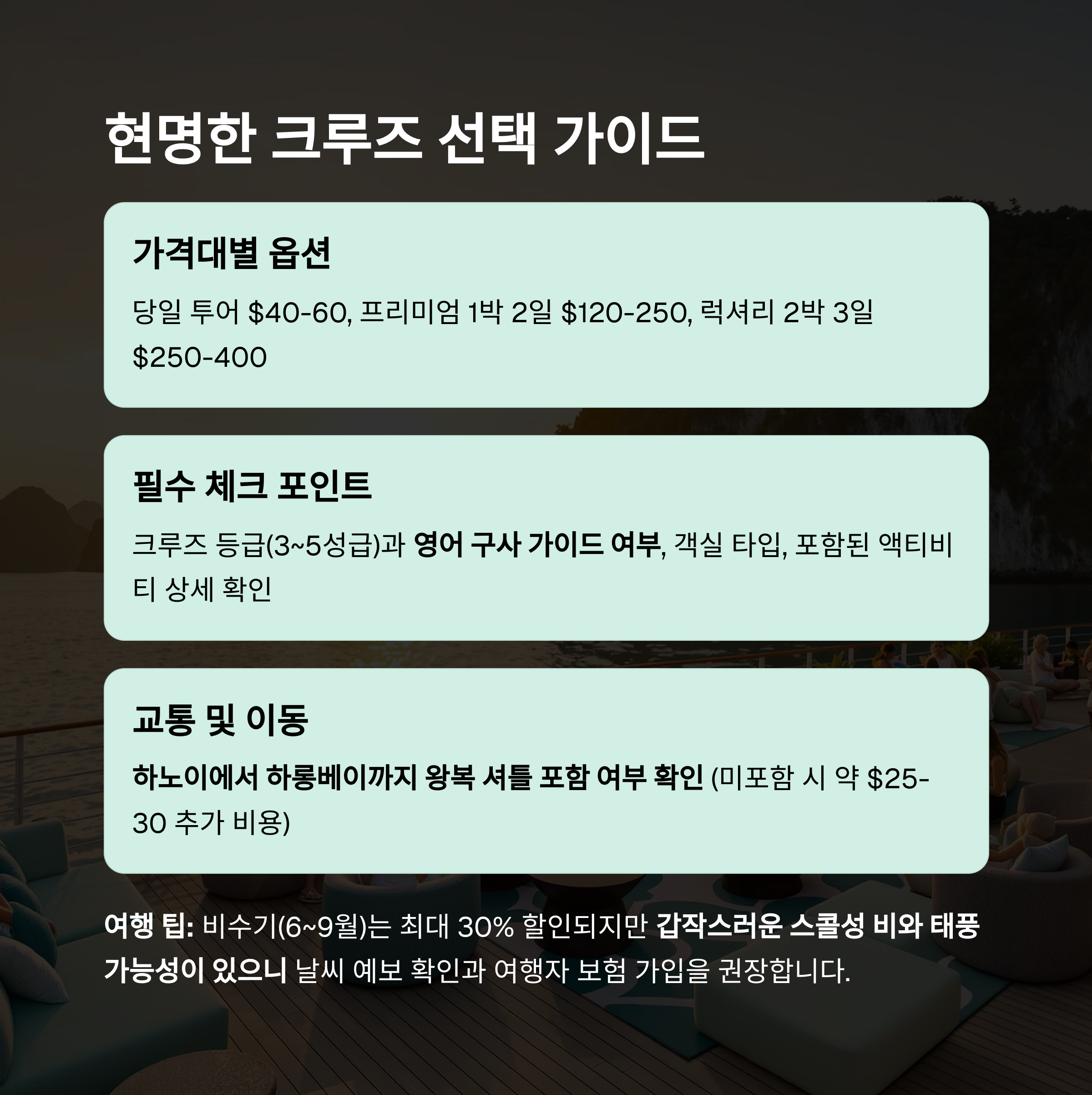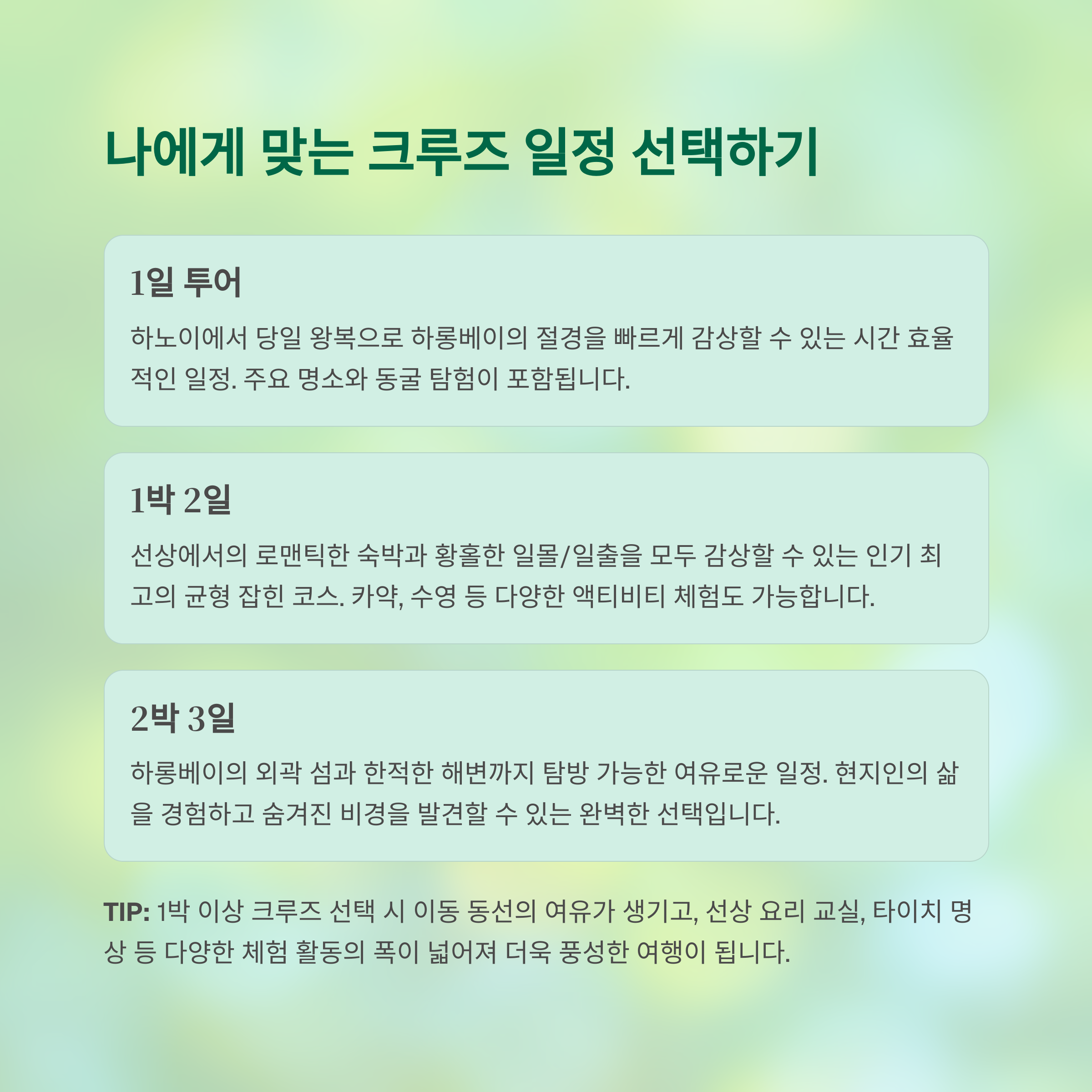 1. 하롱베이 크루즈 유형 및 일정 구성