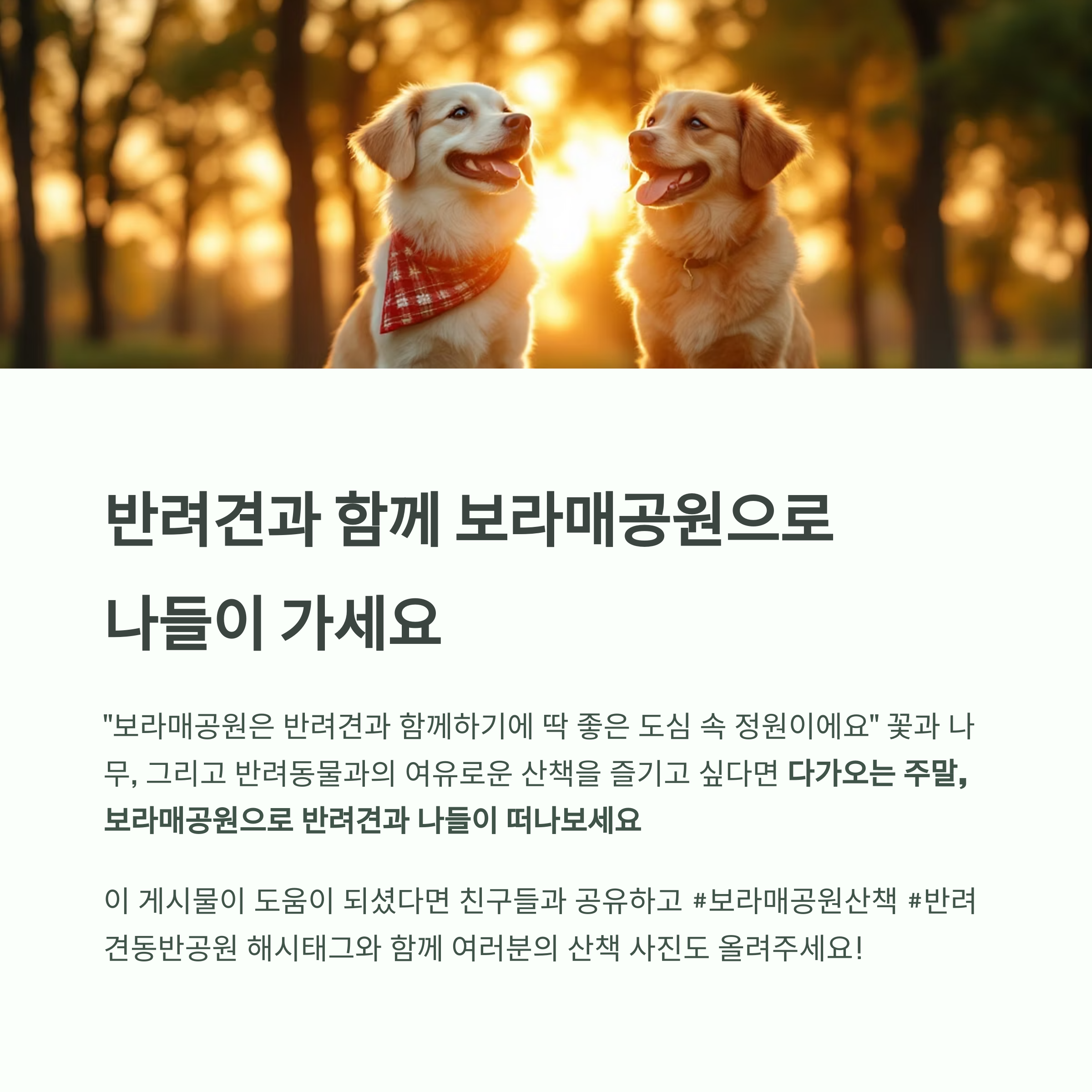 다가오는 주말, 보라매공원으로 반려견과 나들이 떠나보세요