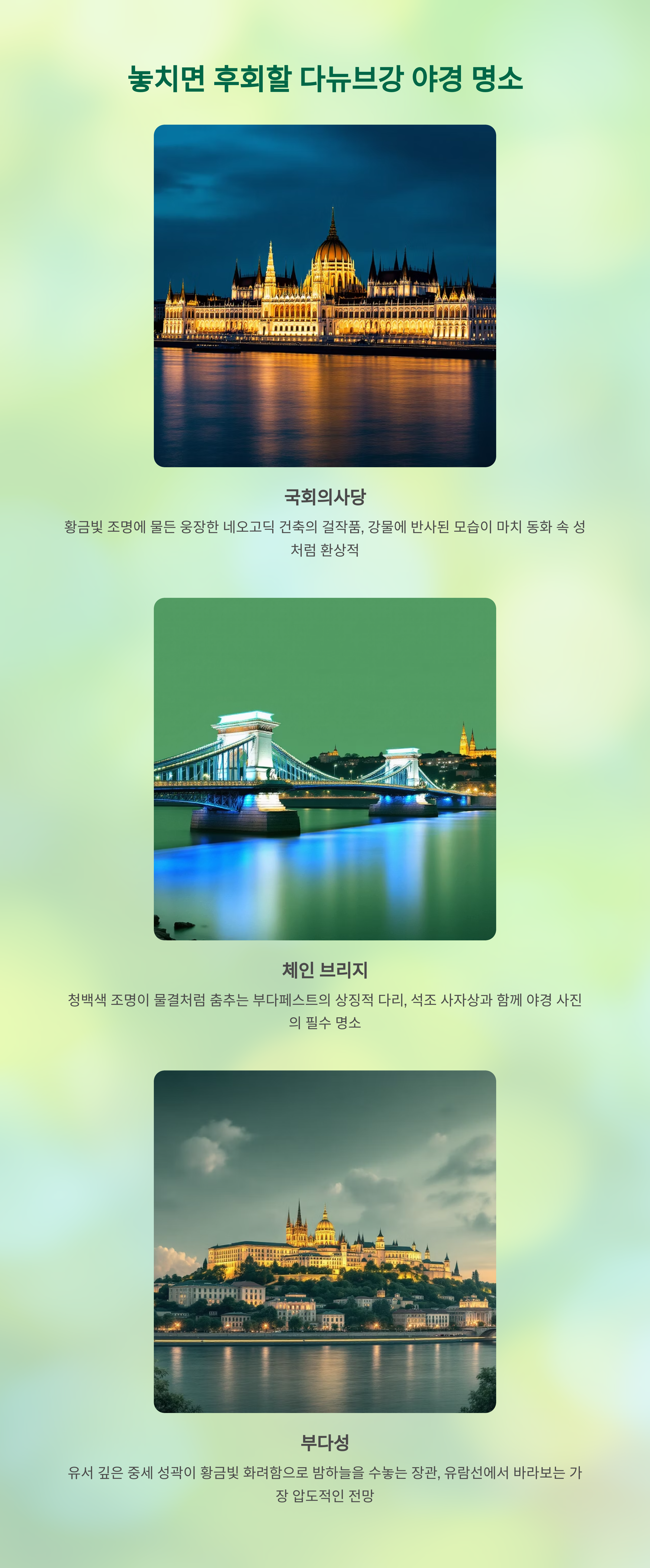| 조명 포인트 | 부다성, 국회의사당, 체인 브리지 |