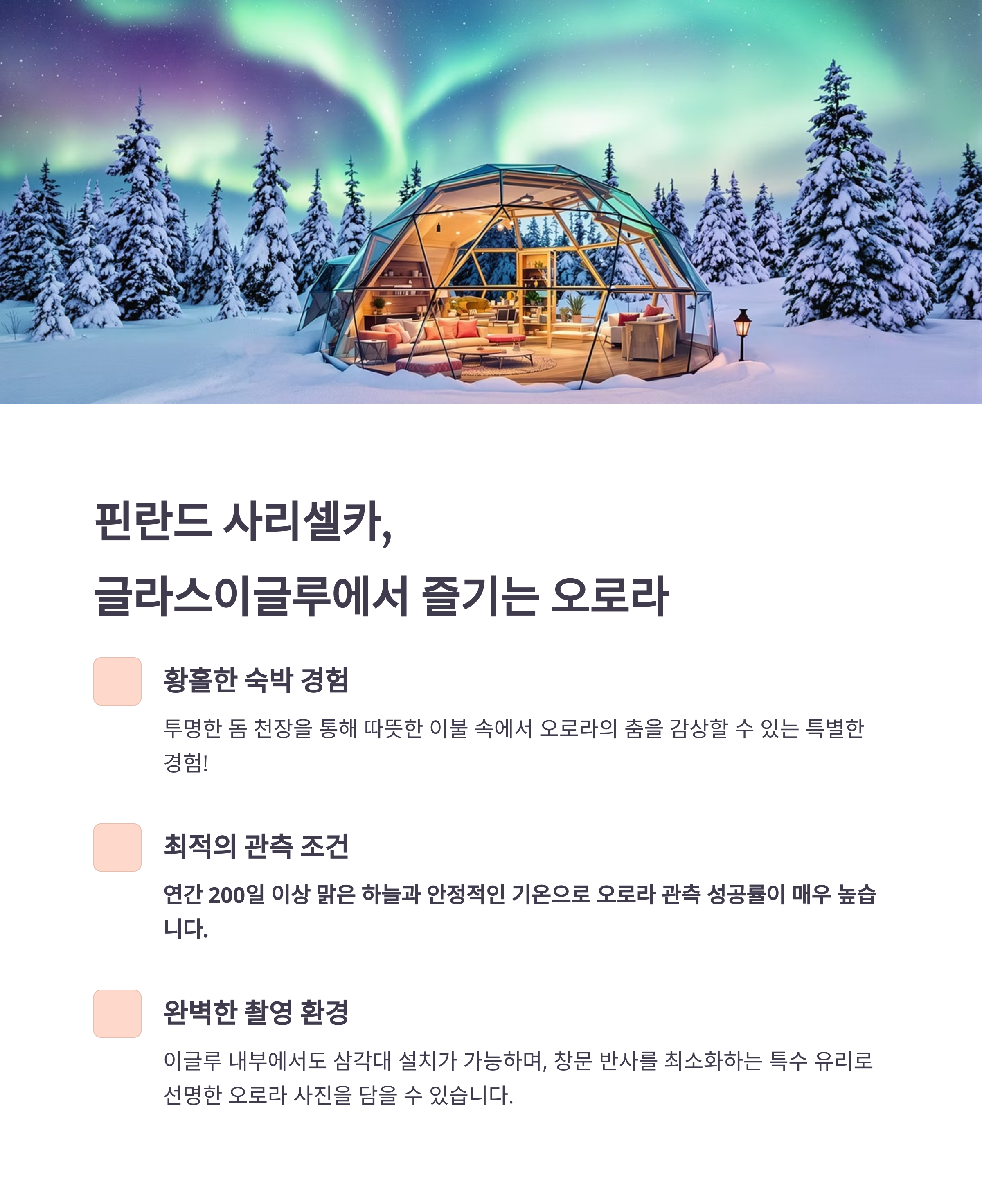 2. 핀란드 사리셀카 – 글라스이글루 체험과 함께