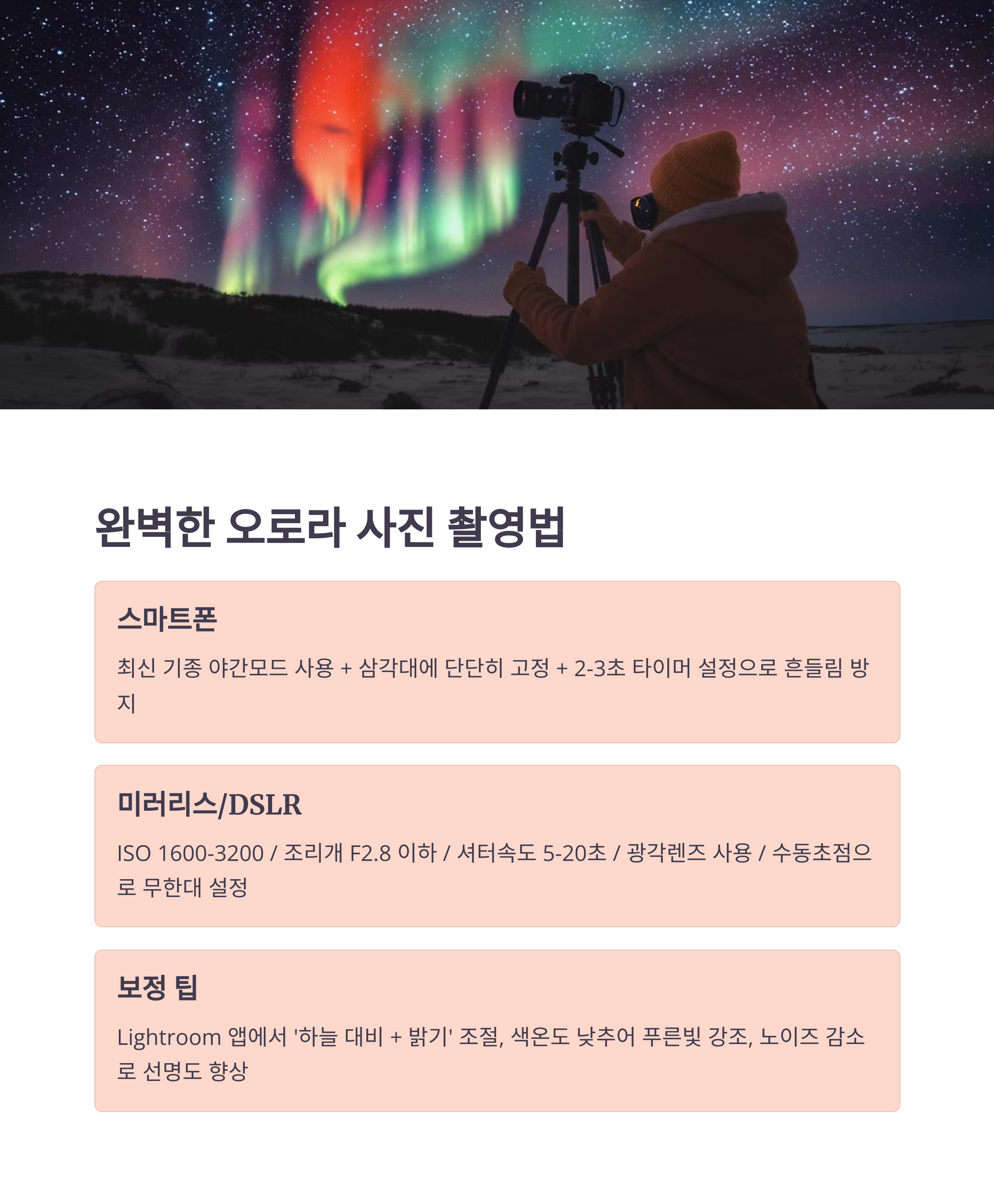 어디서, 언제, 어떻게 찍을까? 오로라 여행 실전 가이드