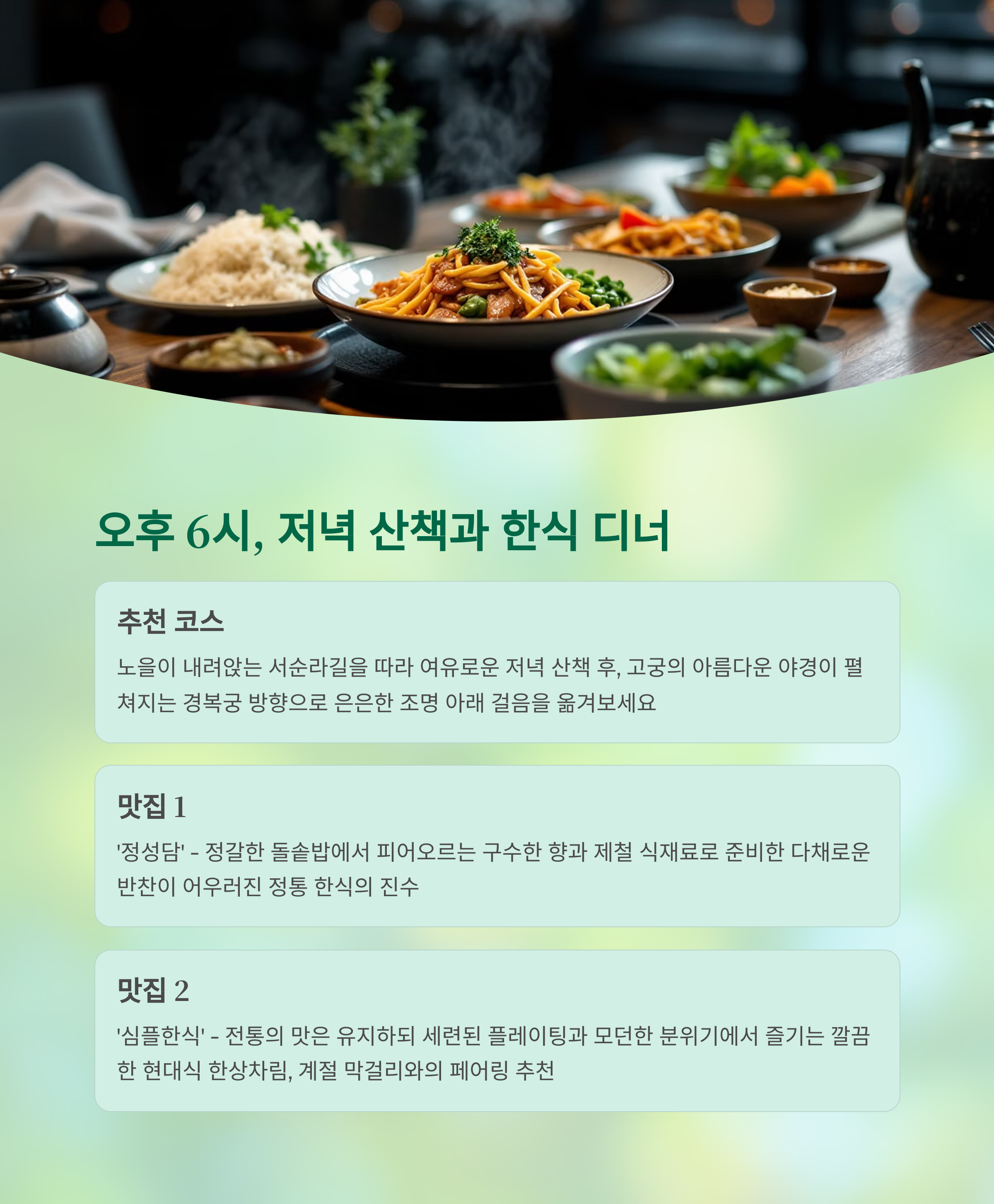 하루의 마무리는 조용한 저녁 산책과 따뜻한 한식