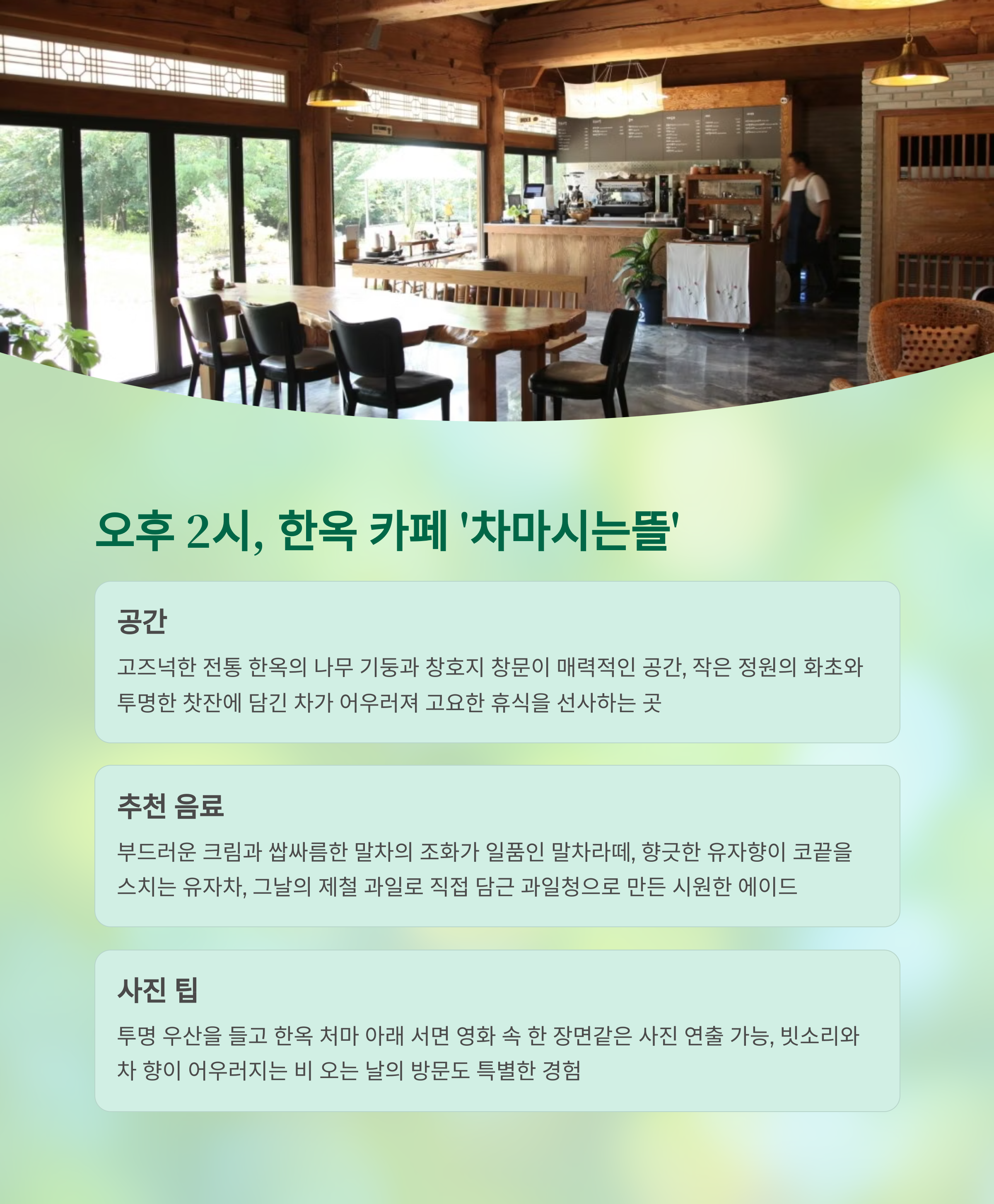 오후 2:00 – 한옥감성 카페 ‘차마시는뜰’