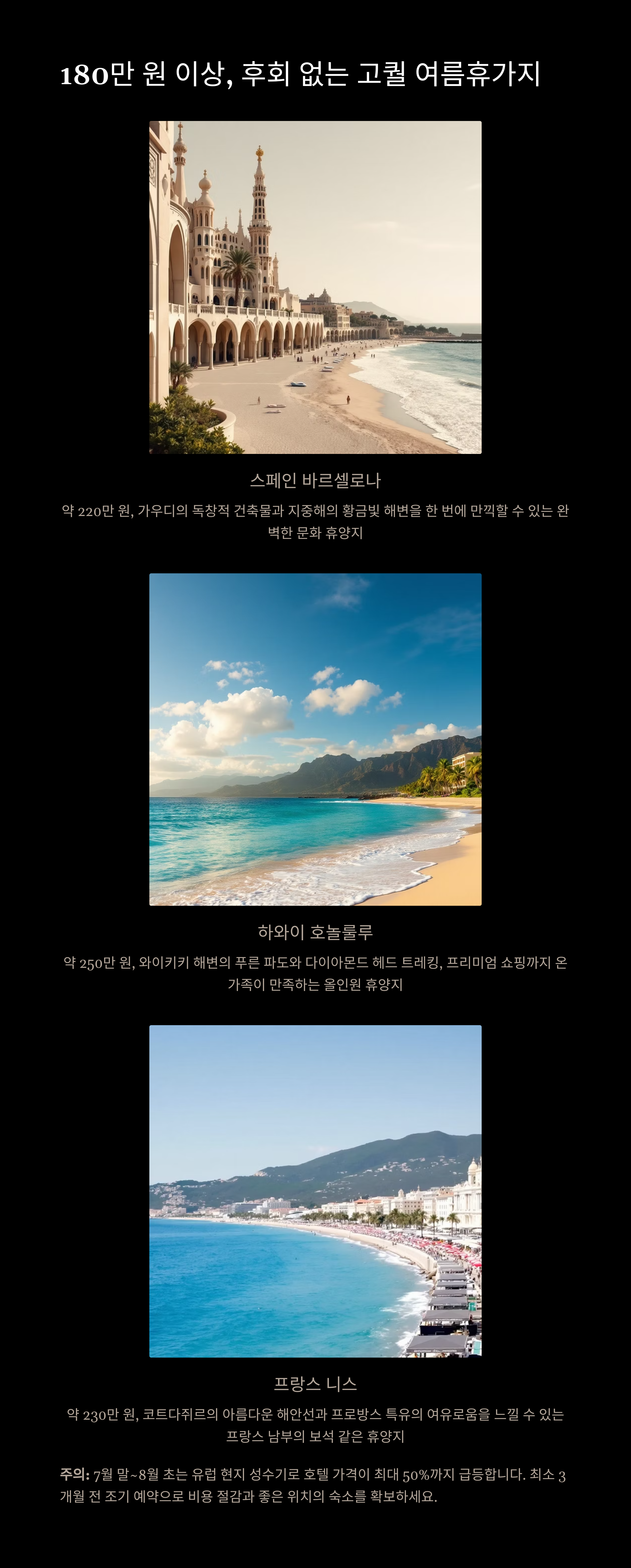 4. 예산 180만 원 이상 – 멀지만 후회 없는 고퀄 여름휴가지