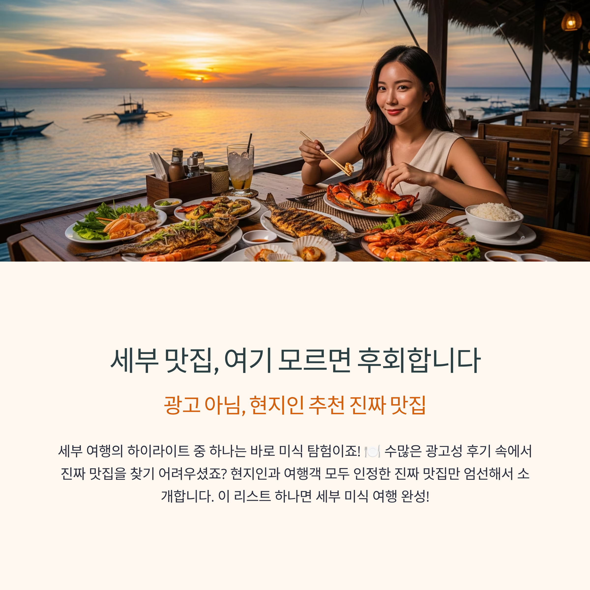 세부 여행의 즐거움에서 절대 빼놓을 수 없는 것이 바로 '음식'이죠! 하지만 막상 맛집을 찾아보면 너무 많은 정보와 광고성 후기 때문에 어디가 진짜 맛있는 곳인지 헷갈릴 때가 많습니다.