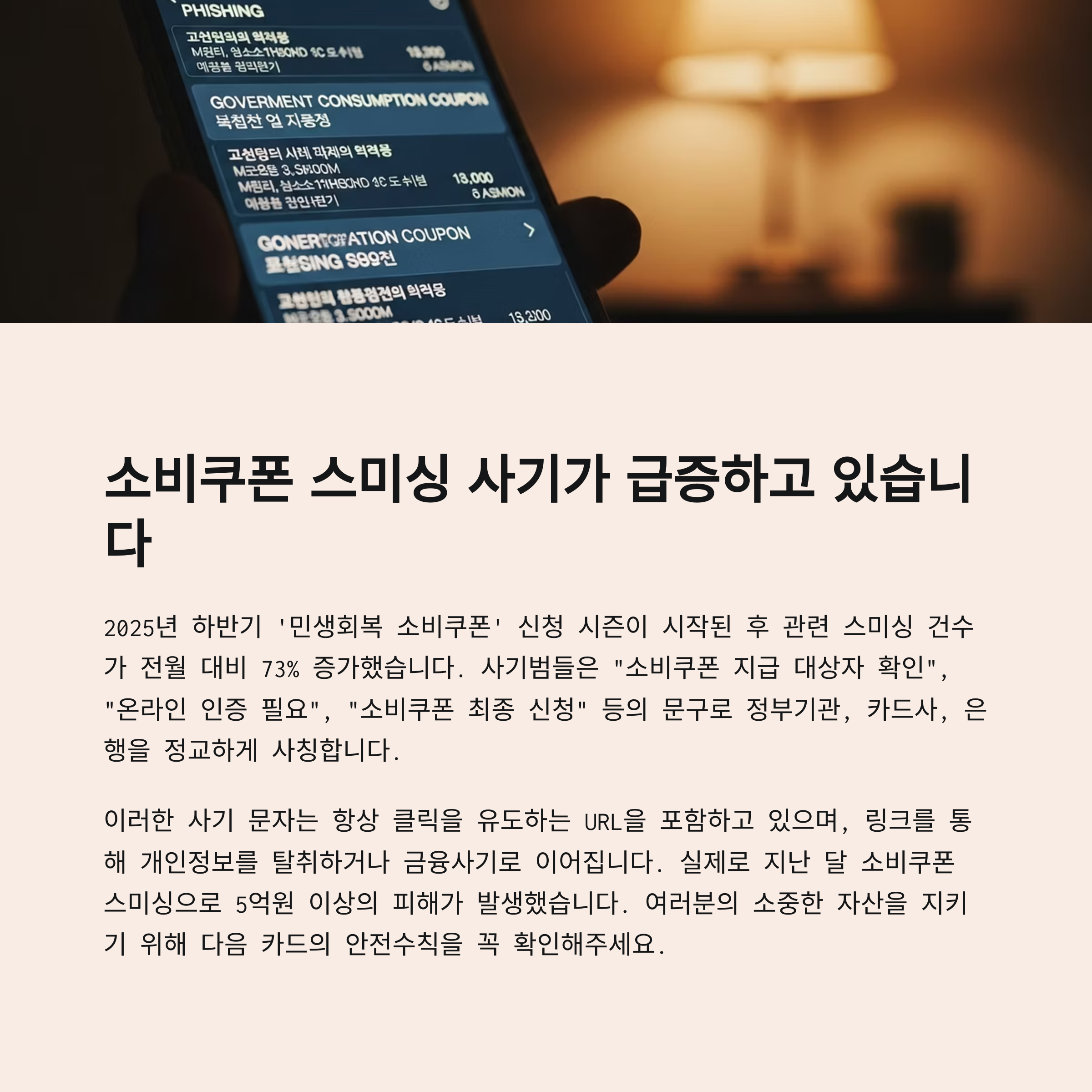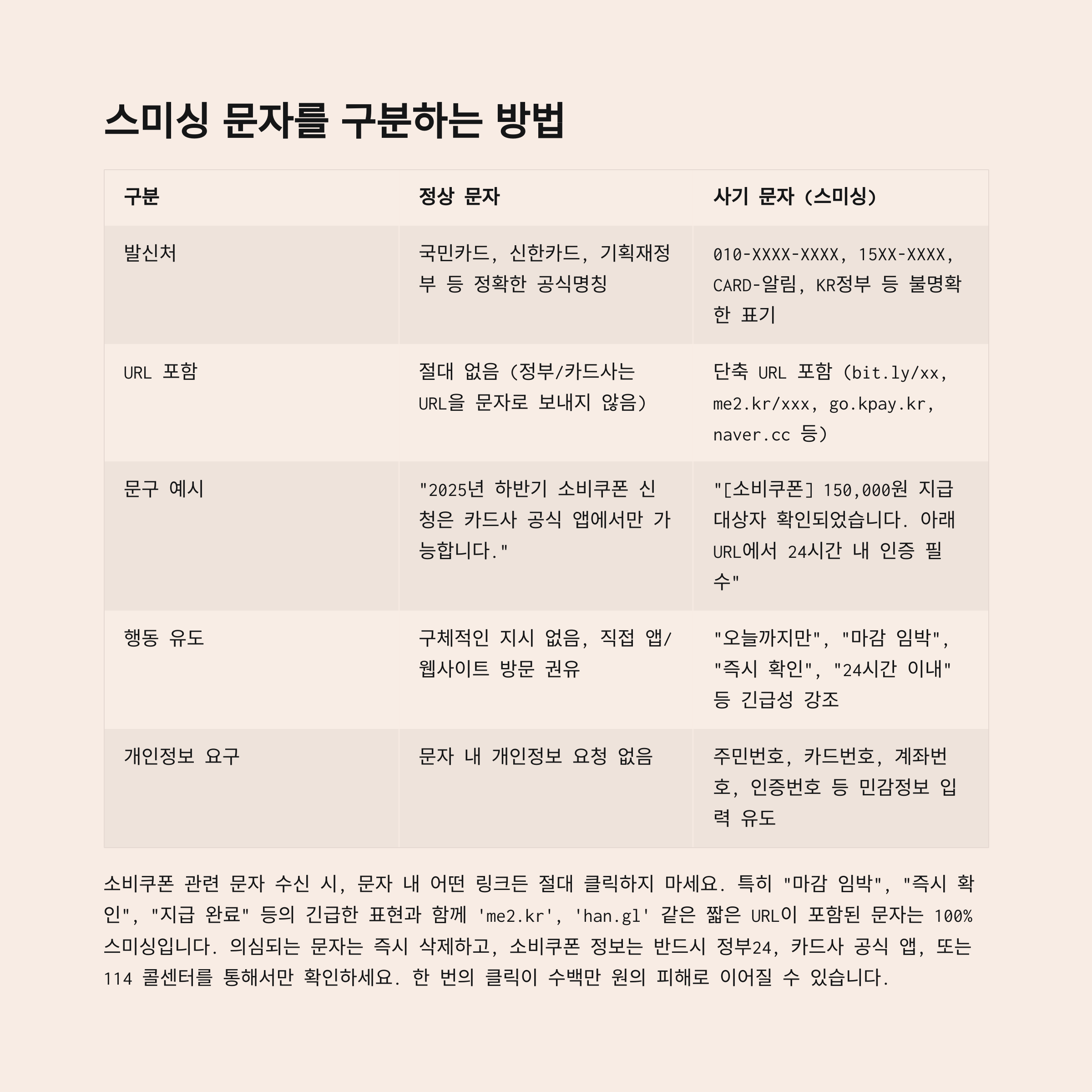 그래서 오늘은 ‘소비쿠폰 관련 문자 스미싱 사기’에 대해