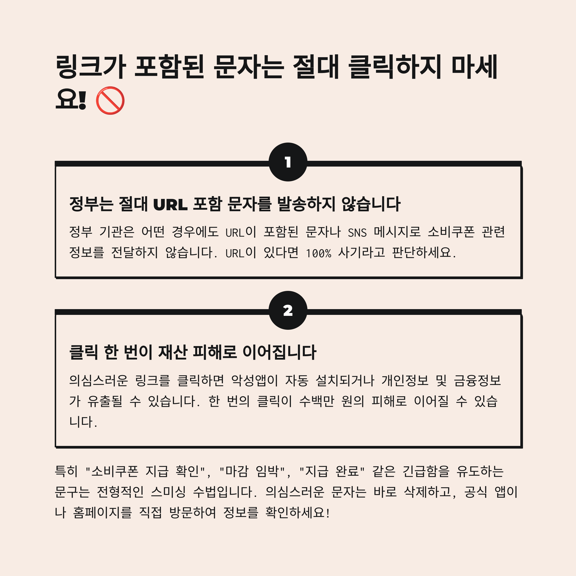 링크가 있는 소비쿠폰 문자, 절대 클릭하면 안 돼요
