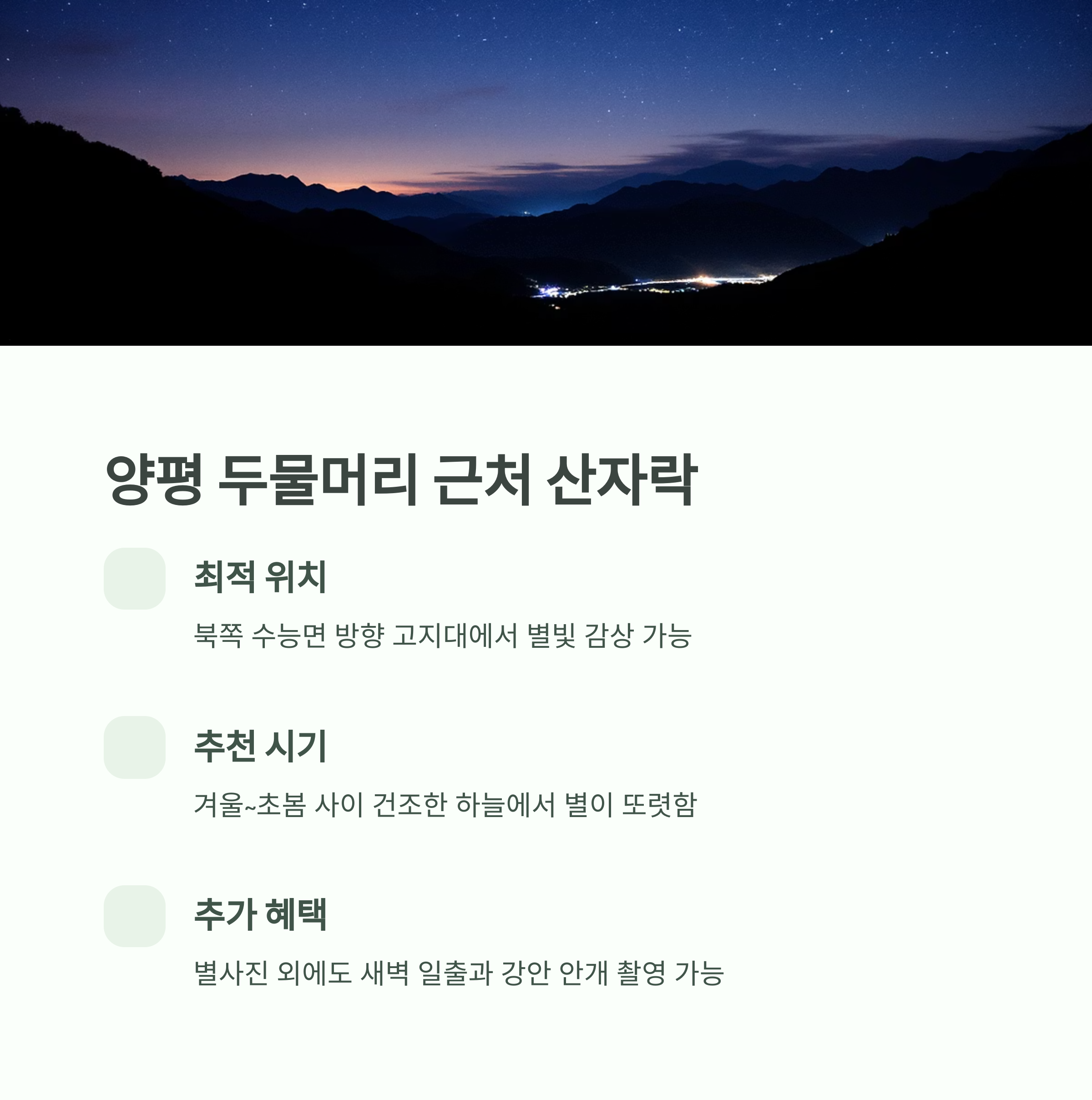 특히 겨울~초봄 사이엔 건조한 하늘로 별이 또렷이 뜨는 날이 많습니다.