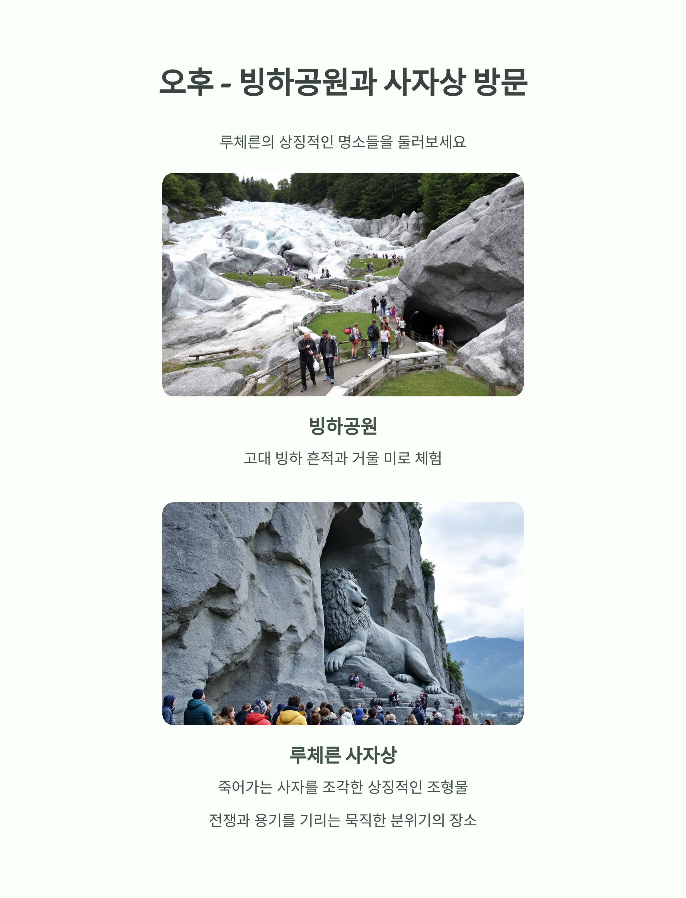 | 14:00 | 빙하공원 & 루체른 사자상 관람 |