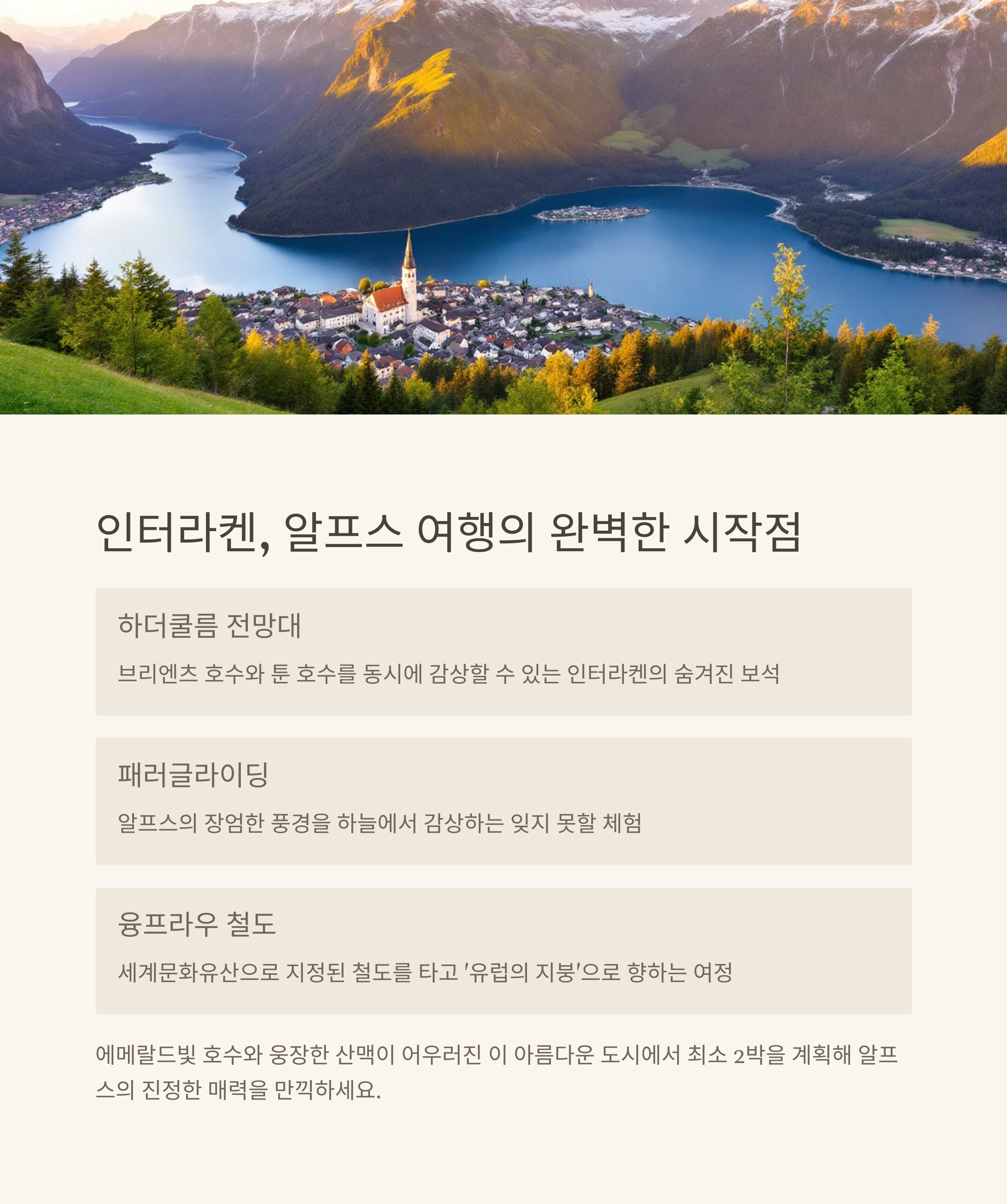 | 하더쿨름 전망대 | 인터라켄 전체를 조망하는 뷰포인트 |