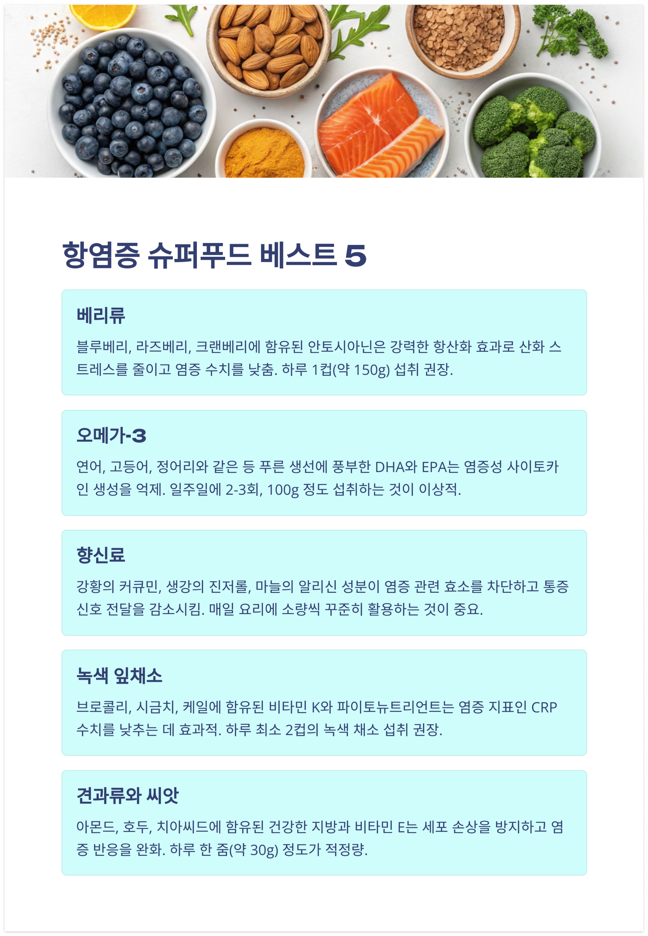 항염증에 좋은 식재료 추천 리스트