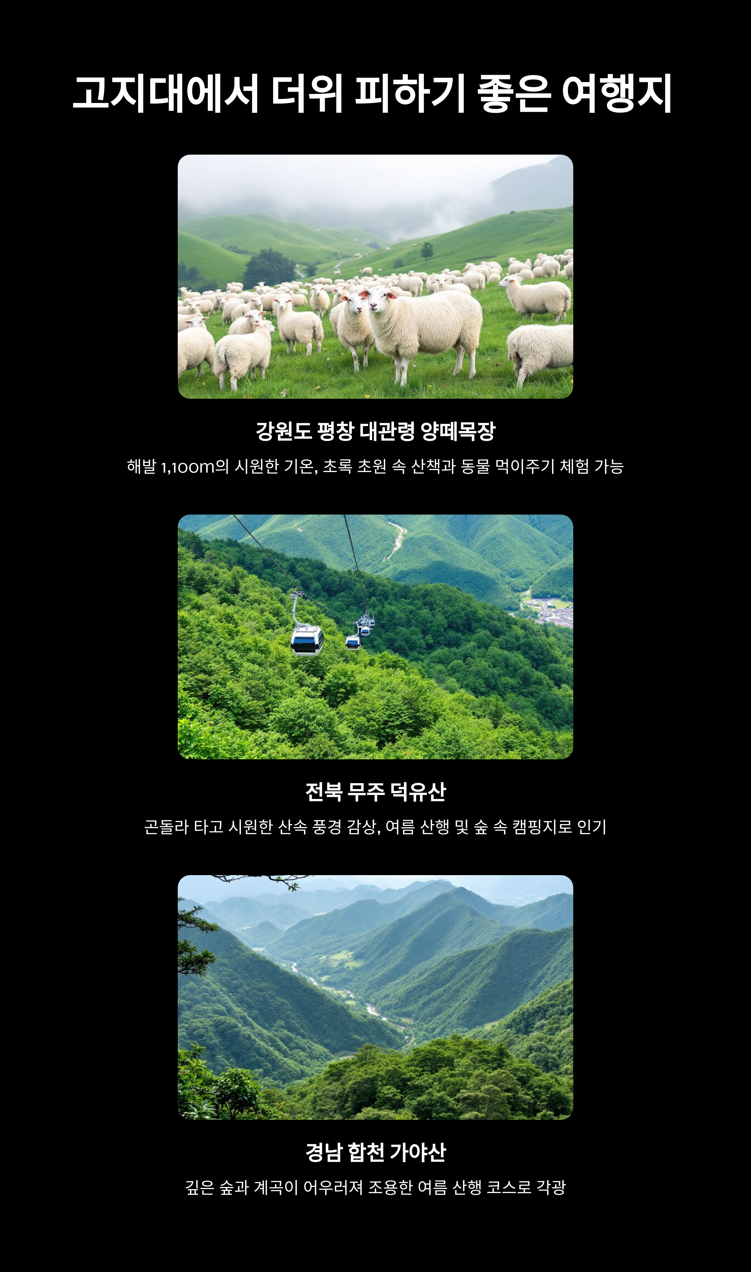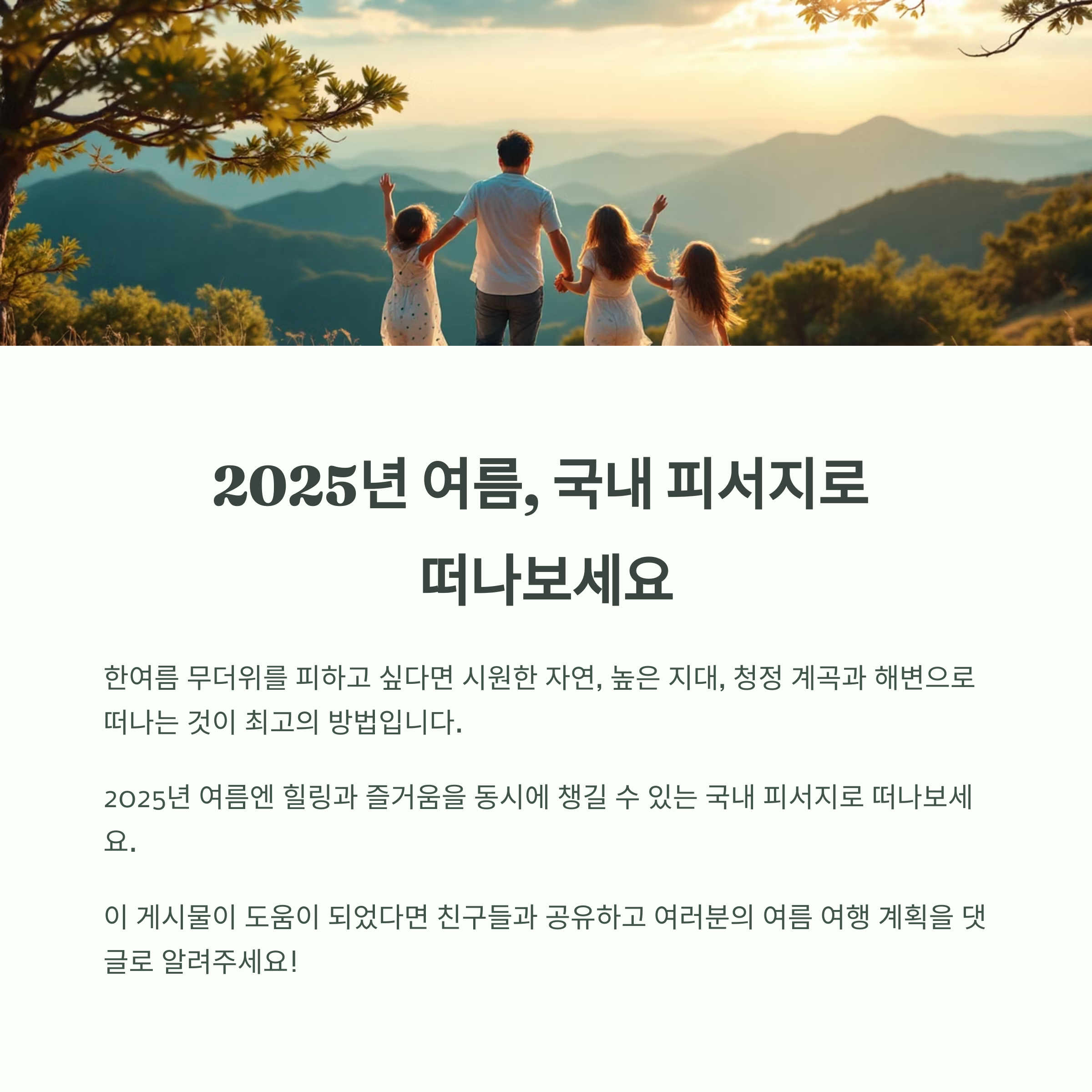 한여름 무더위를 피하고 싶다면 시원한 자연, 높은 지대, 청정 계곡과 해변으로 떠나는 것이 최고의 방법입니다. 2025년 여름엔 힐링과 즐거움을 동시에 챙길 수 있는 국내 피서지로 떠나보세요.