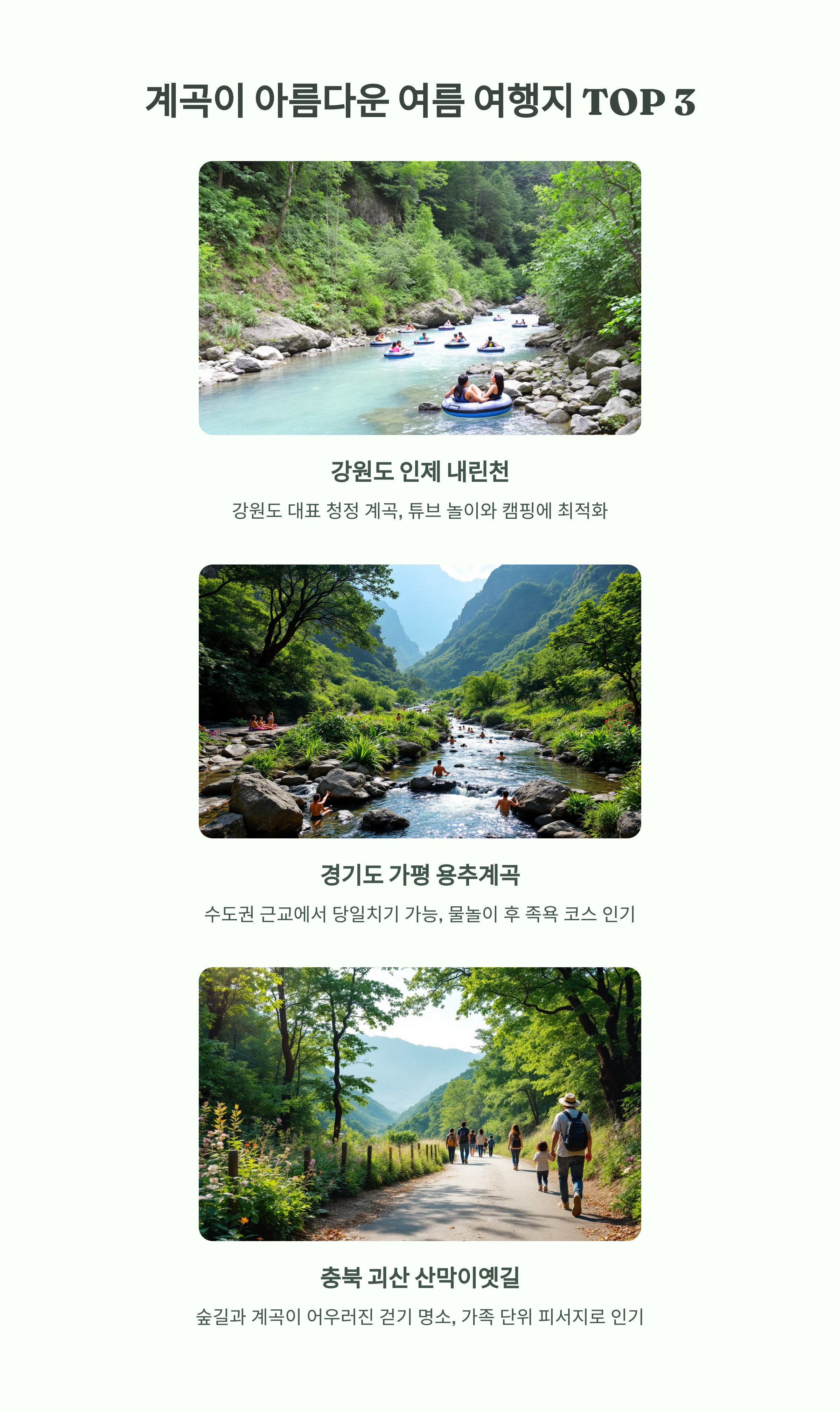 "계곡 여행은 자연과 가장 가까이서 여름을 식힐 수 있는 최고의 선택입니다."