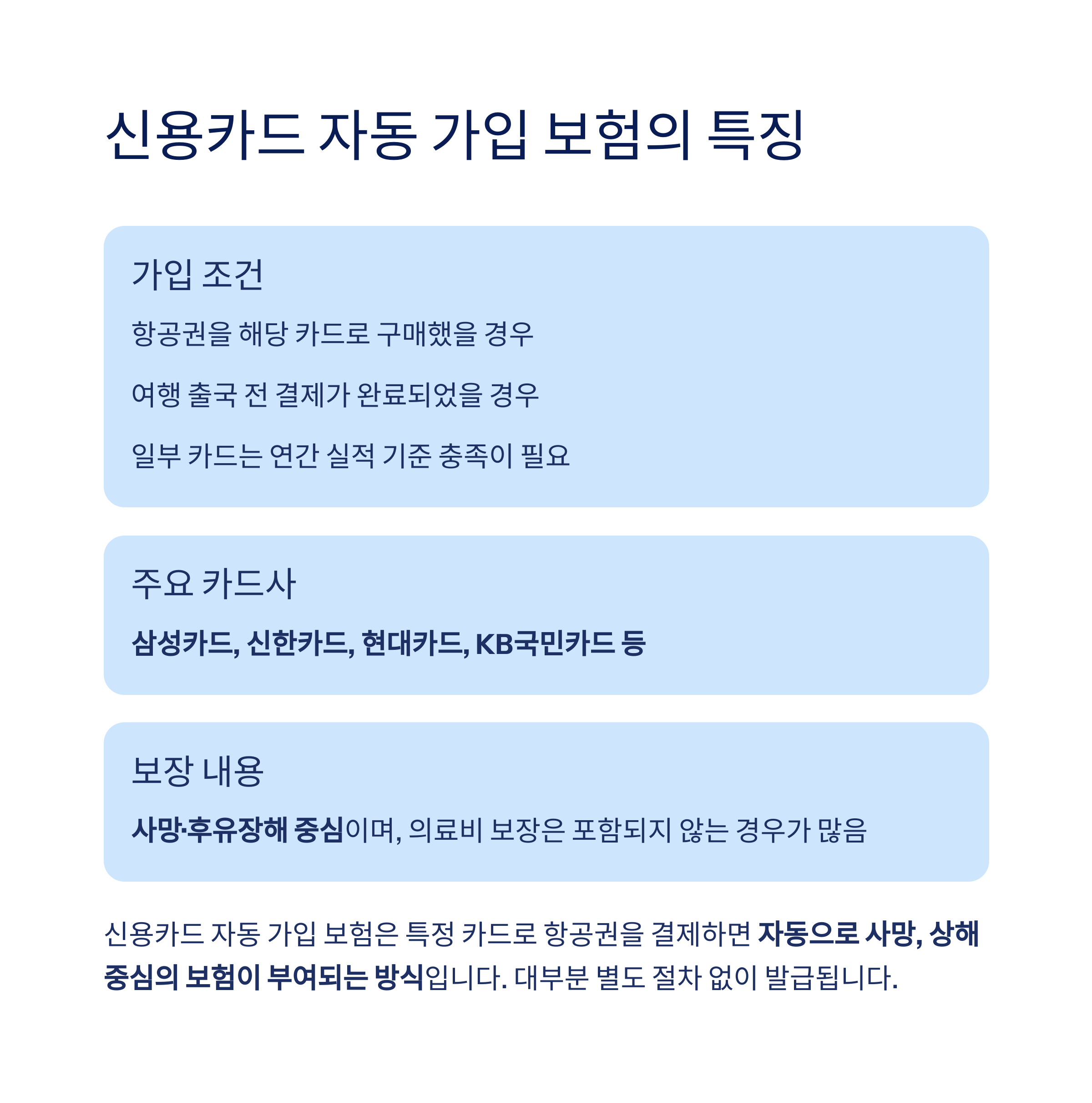신용카드 자동 가입 보험은 특정 카드로 항공권을 결제하면