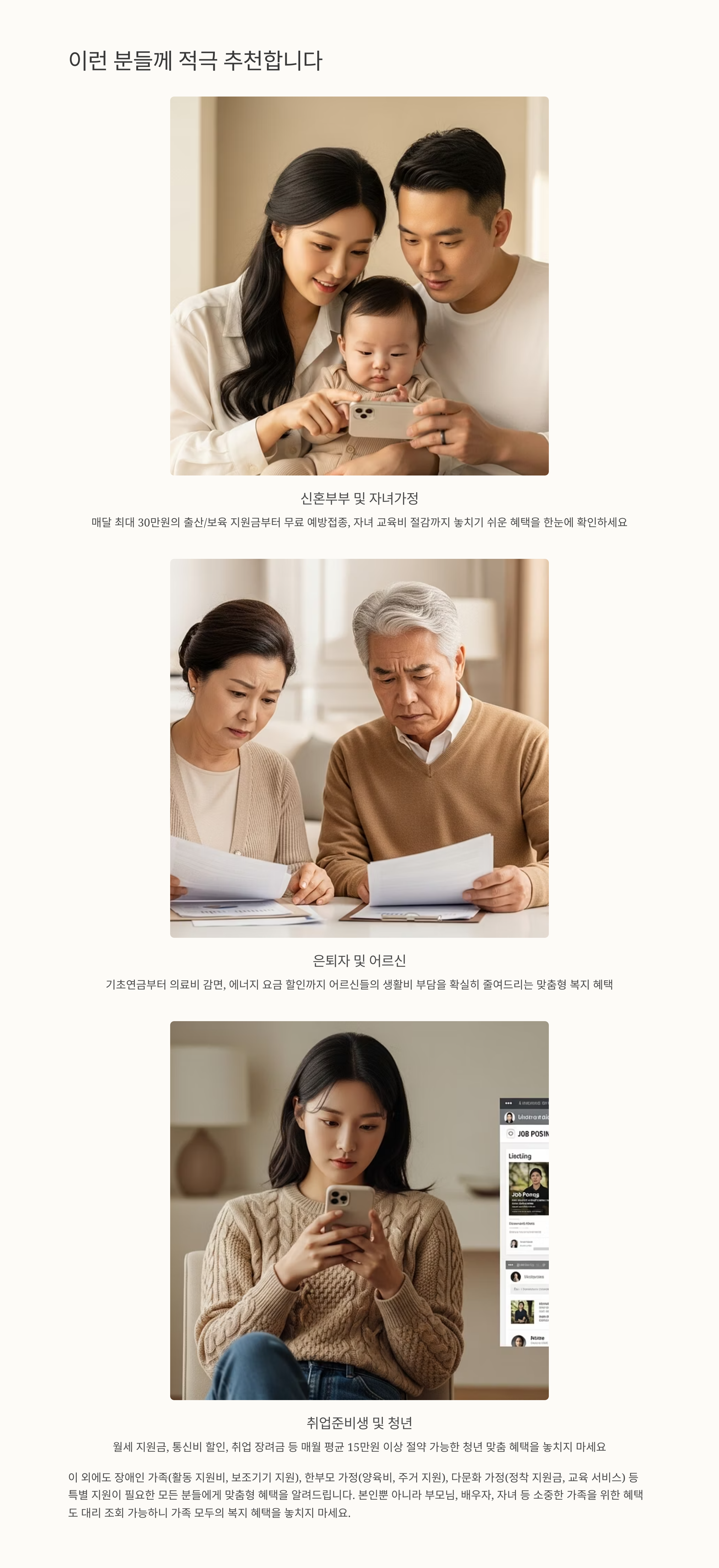 - 혜택 수: 1100개 이상 (국가·지자체·민간 연계 복지 포함)