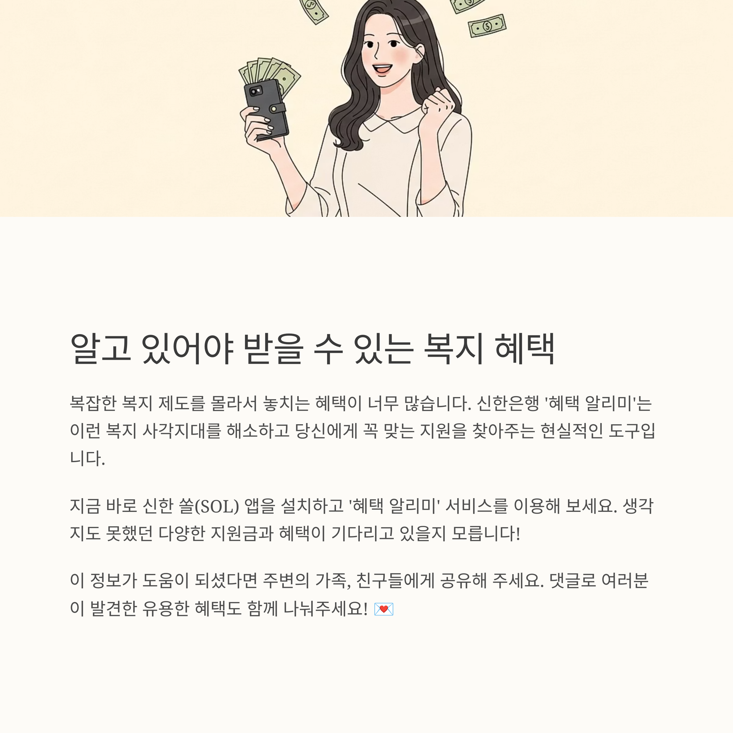 - 운영사: 신한은행 (비금융 정보 기반 복지 맞춤 서비스)