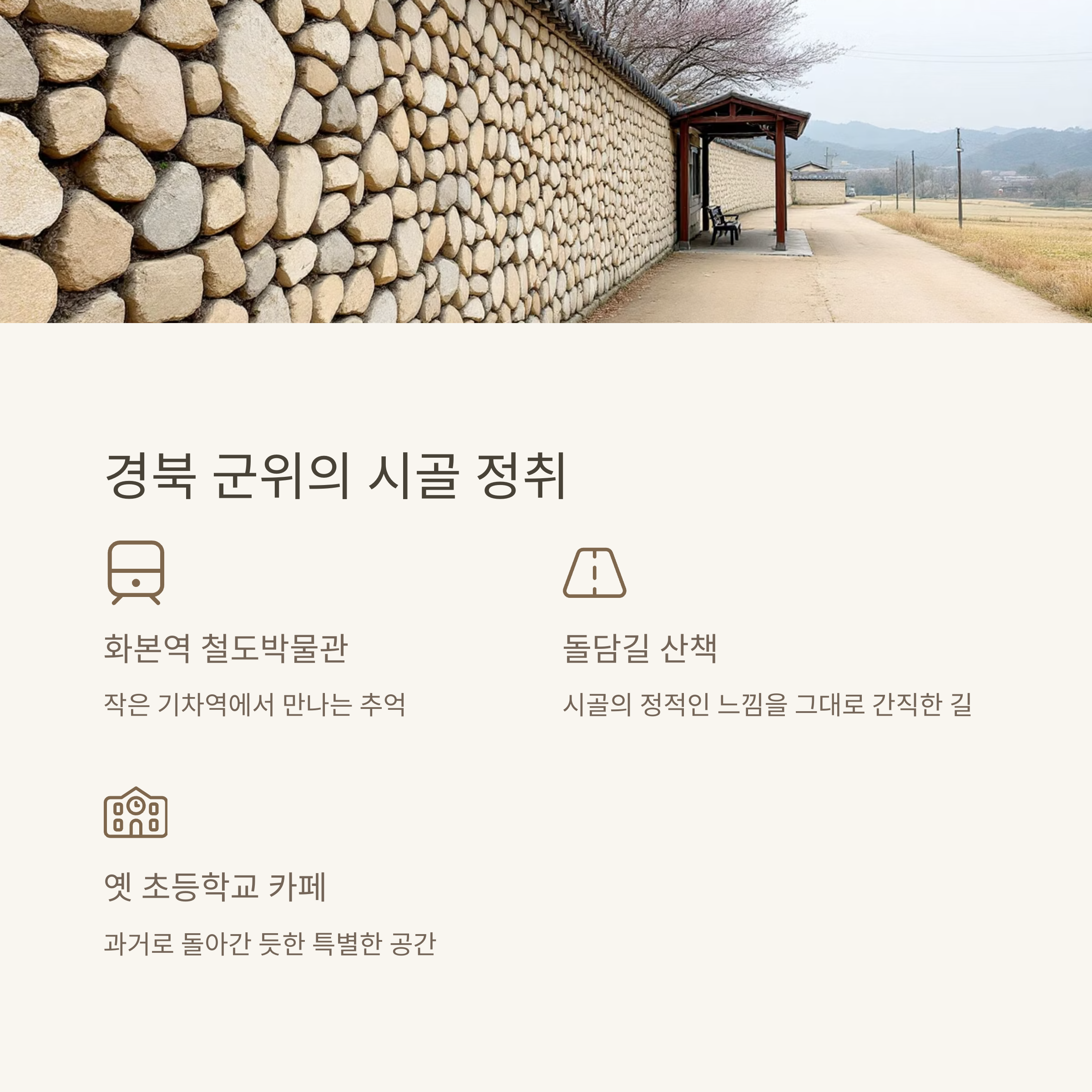 | 군위 | 돌담·고요함 | 옛 마을 산책 | 촬영지 감성 |