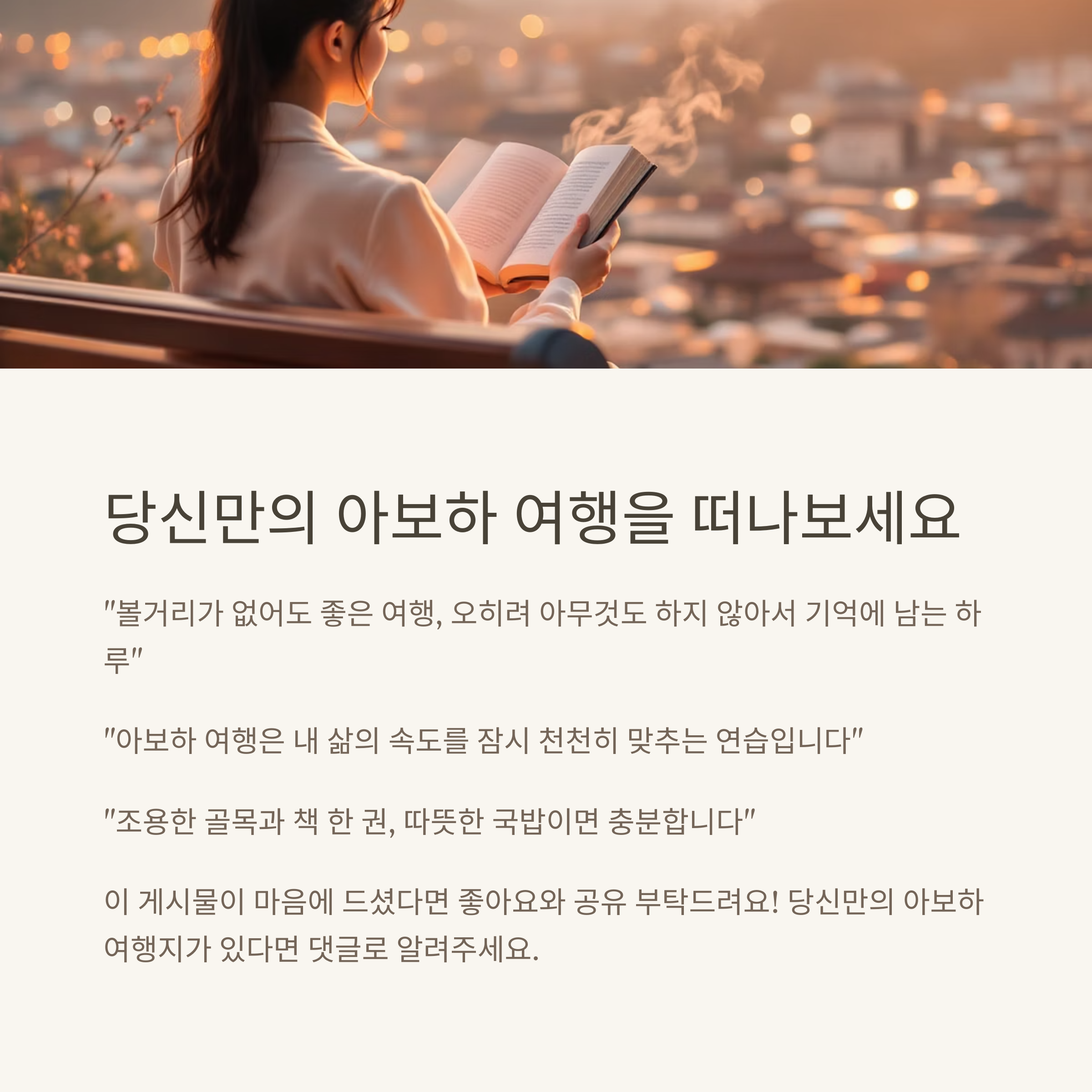 "아보하 여행은 내 삶의 속도를 잠시 천천히 맞추는 연습입니다"