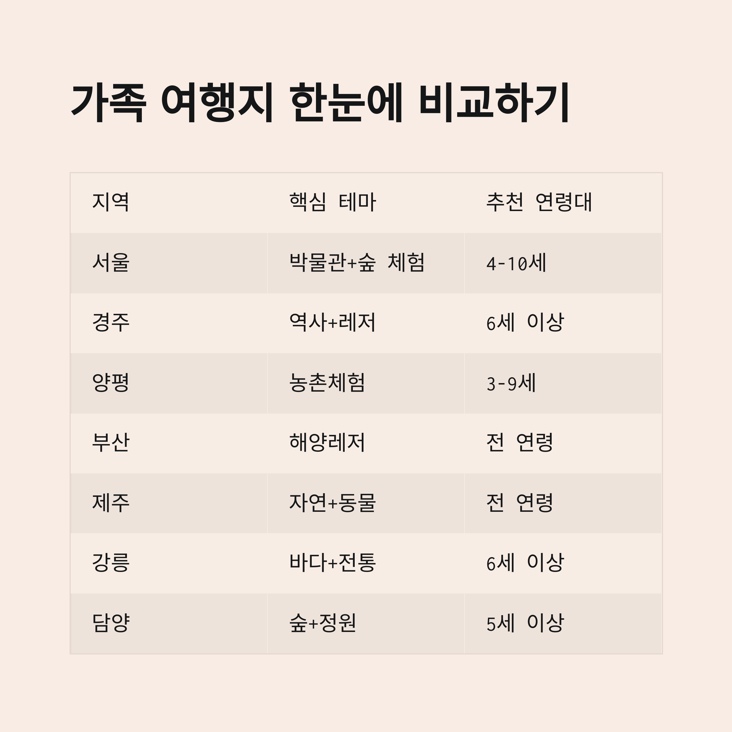 | 강릉 | 바다+전통 | 6세 이상 | 감성 여행 추천 |