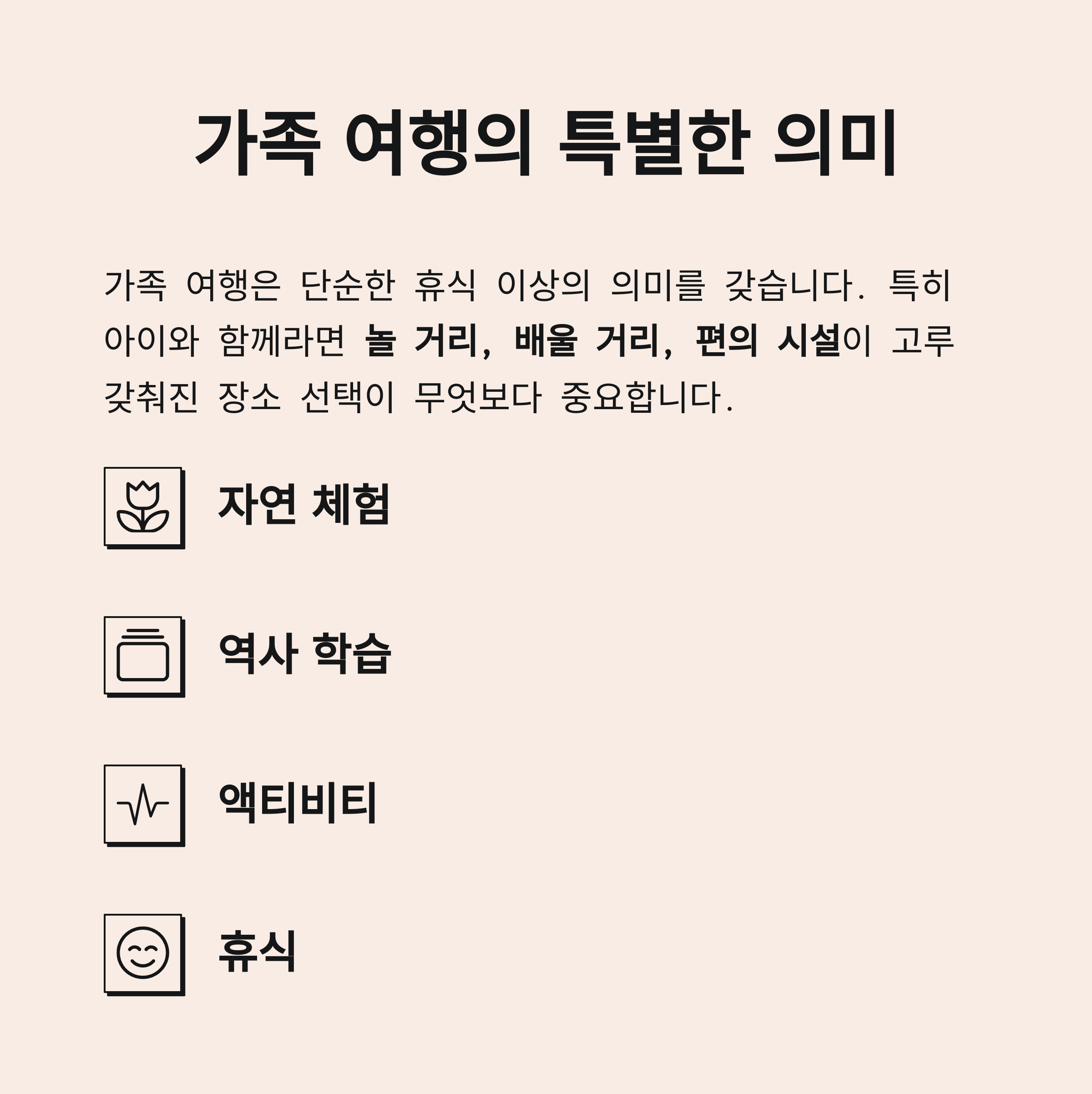 가족 여행은 단순한 휴식 이상의 의미를 갖습니다.