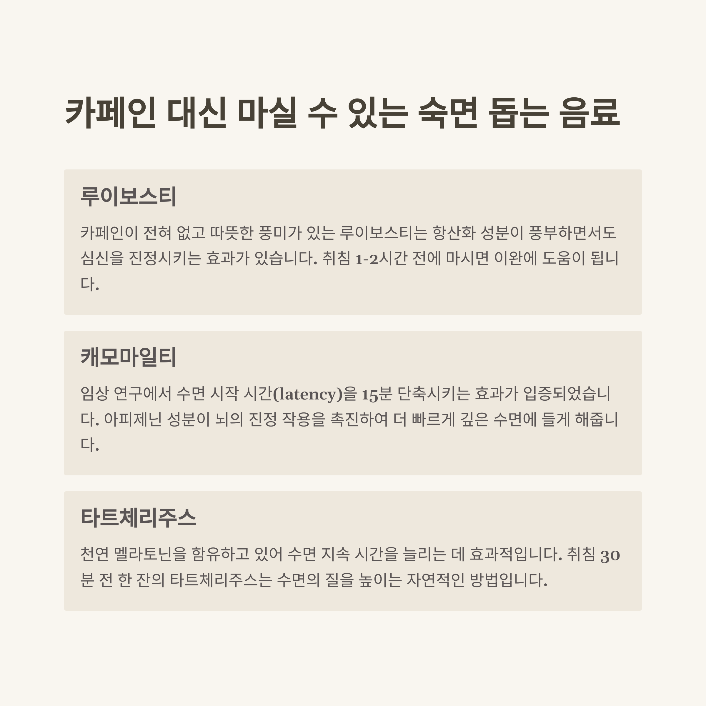 - 카페인 프리 허브티 (루이보스, 캐모마일)