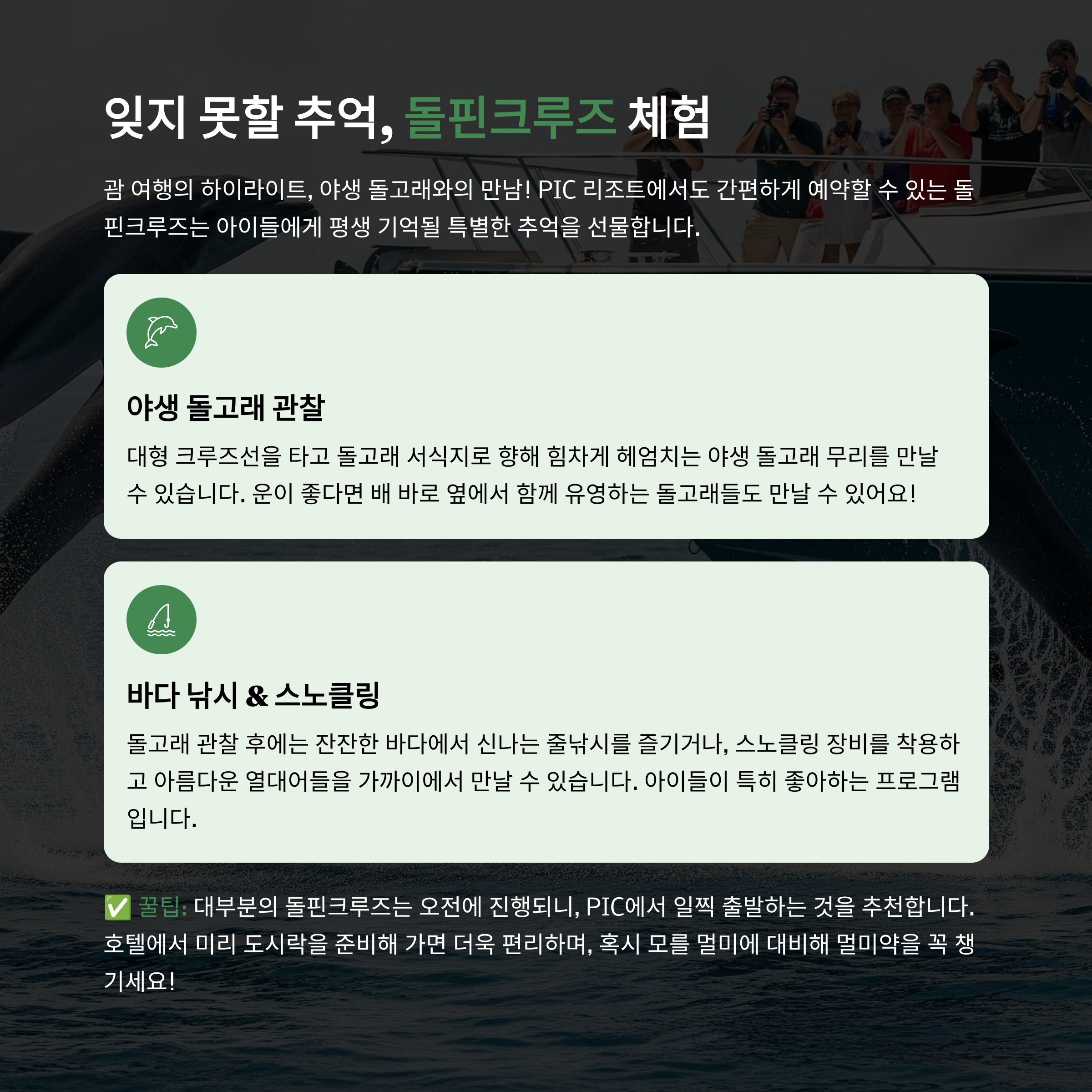 ✅ 돌핀크루즈 투어 핵심 포인트