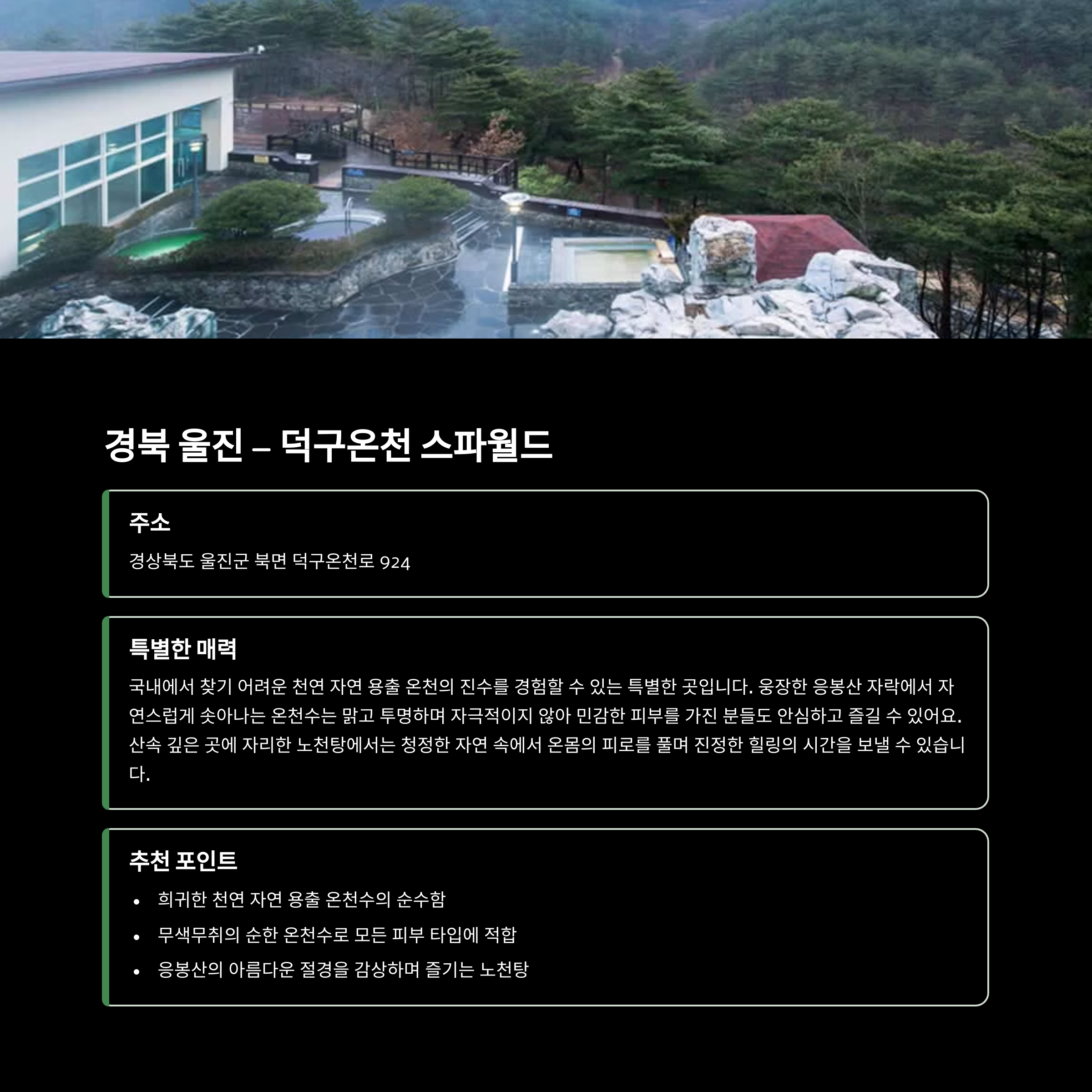 경북 | 덕구온천 스파월드 | 울진군 덕구온천로 924 | 자연 용출 온천+산세뷰 |