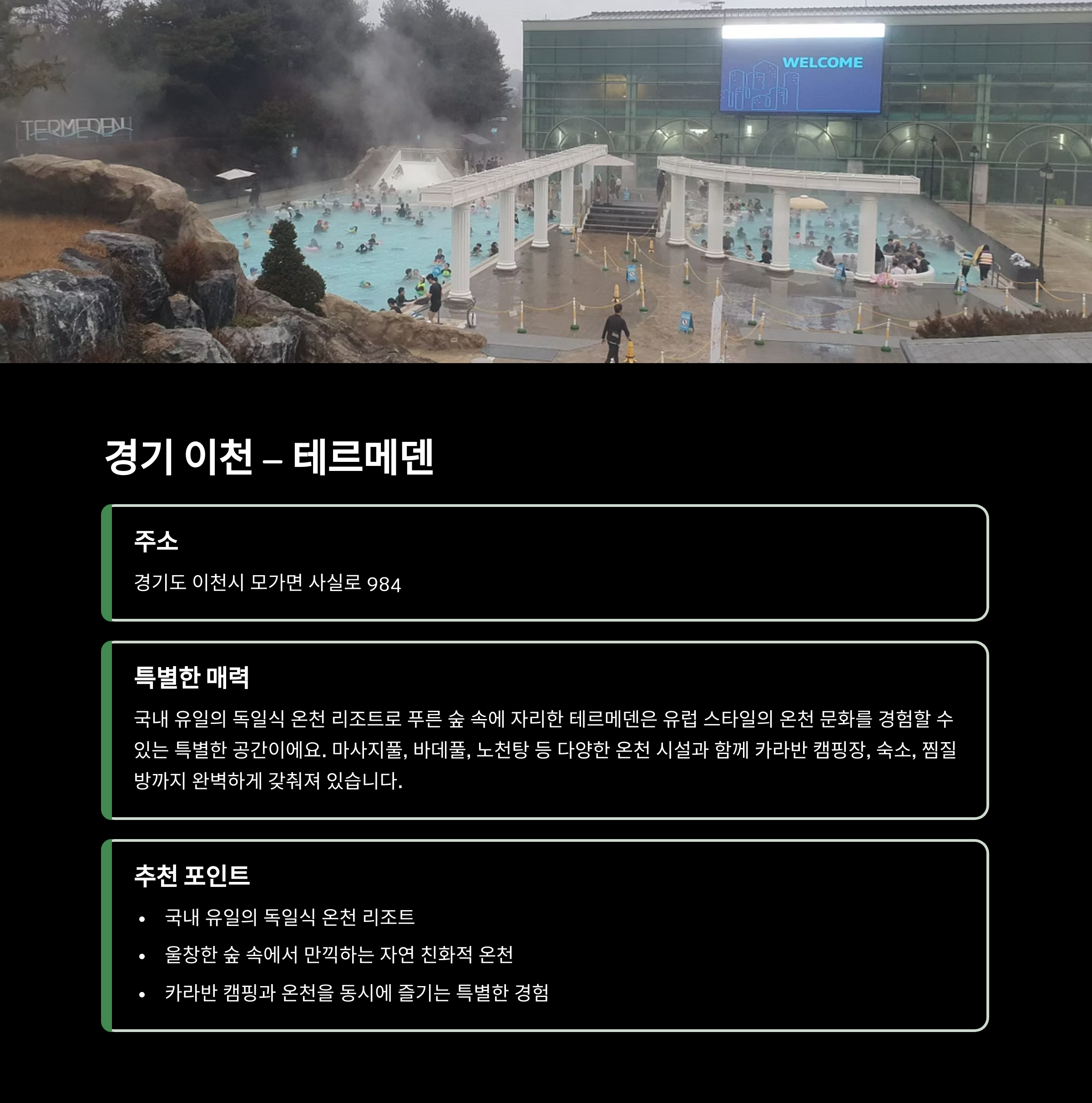 경기 | 테르메덴 | 이천시 사실로 984 | 독일식+숲속 리조트 |