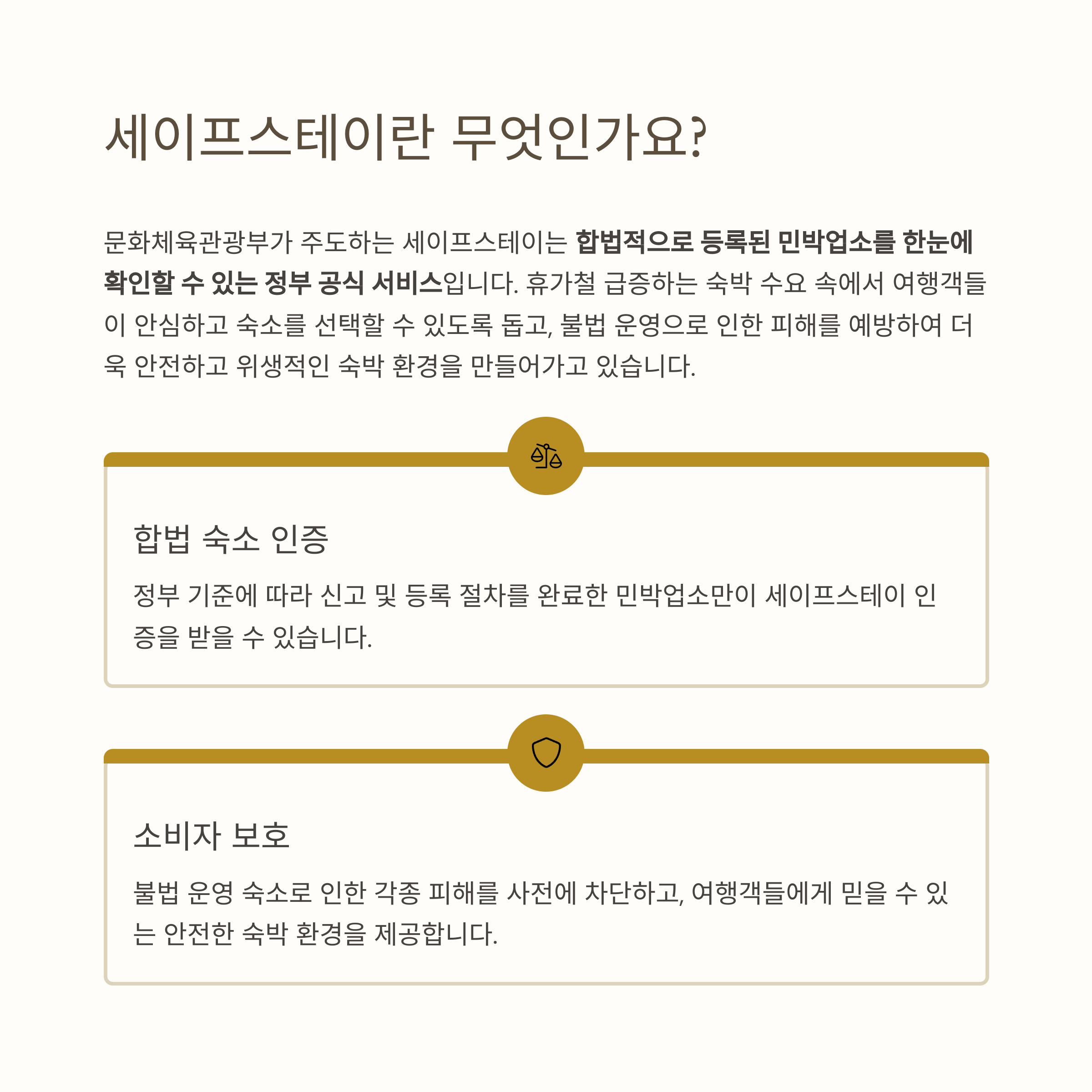 문화체육관광부가 주도하는 세이프스테이는 합법적으로 등록된 민박업소를 한눈에 확인할 수 있는 서비스예요.