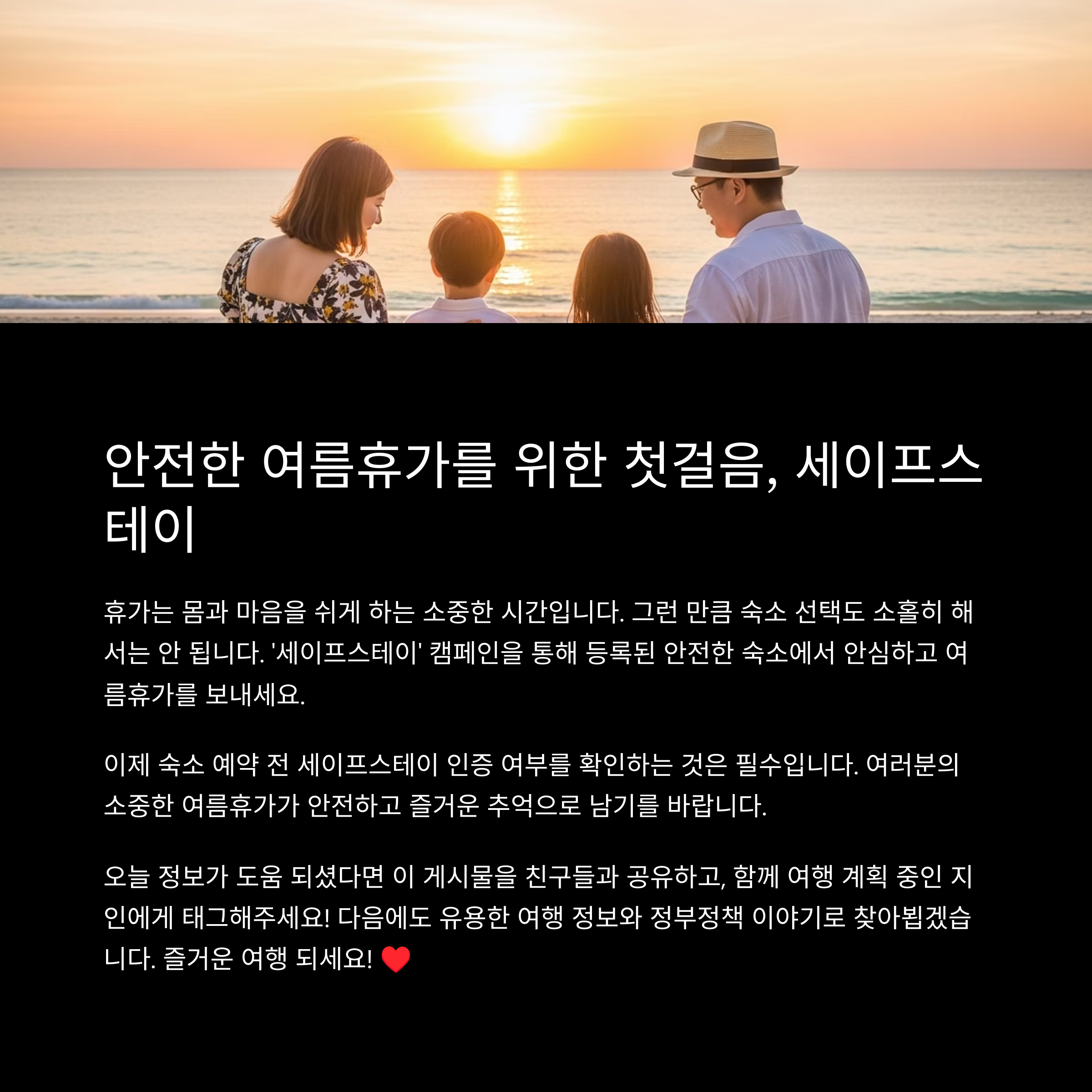 '세이프스테이' 캠페인을 통해 등록된 안전한 숙소에서 안심하고 여름휴가를 보내보세요.