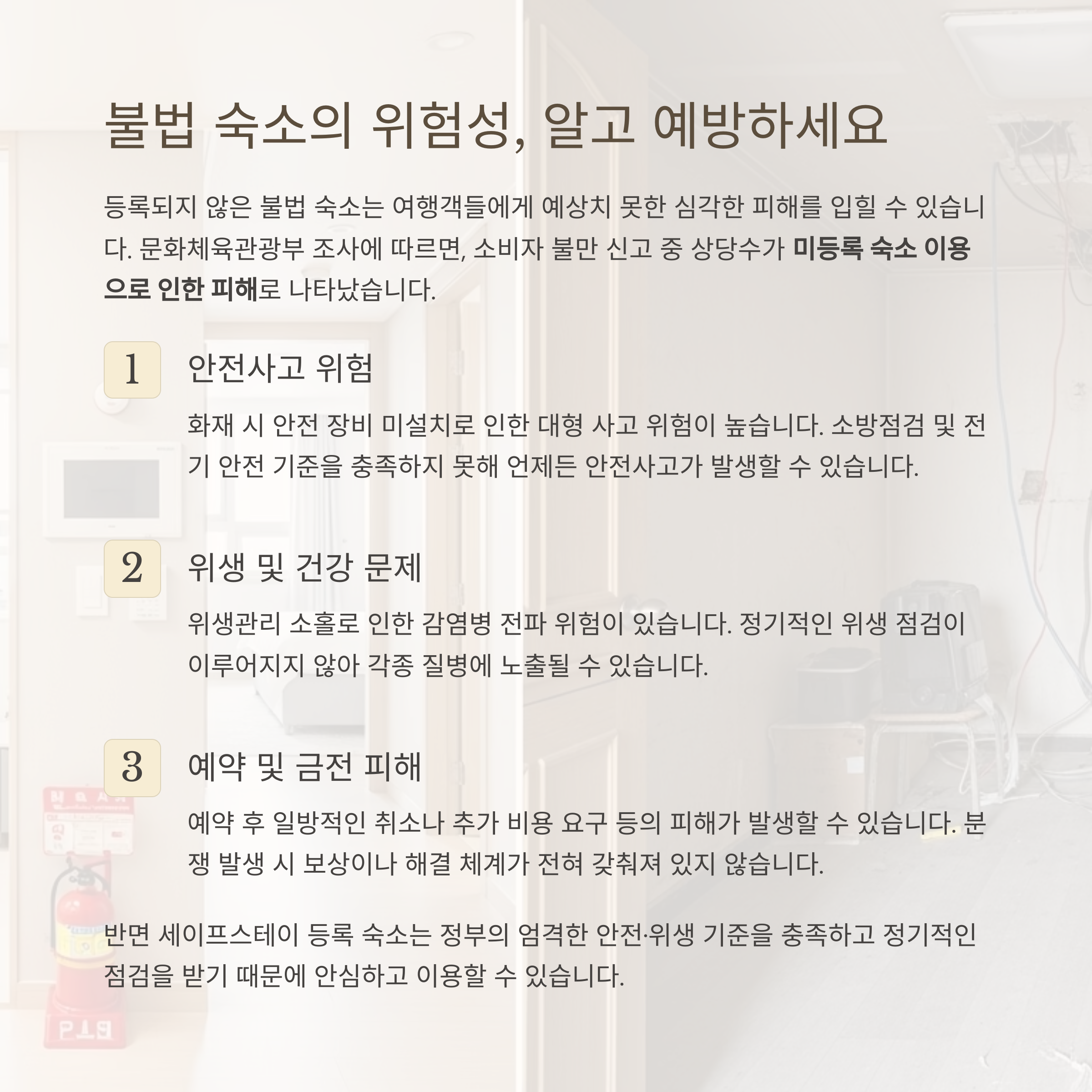 불법 숙소의 문제점, 꼭 알아두세요