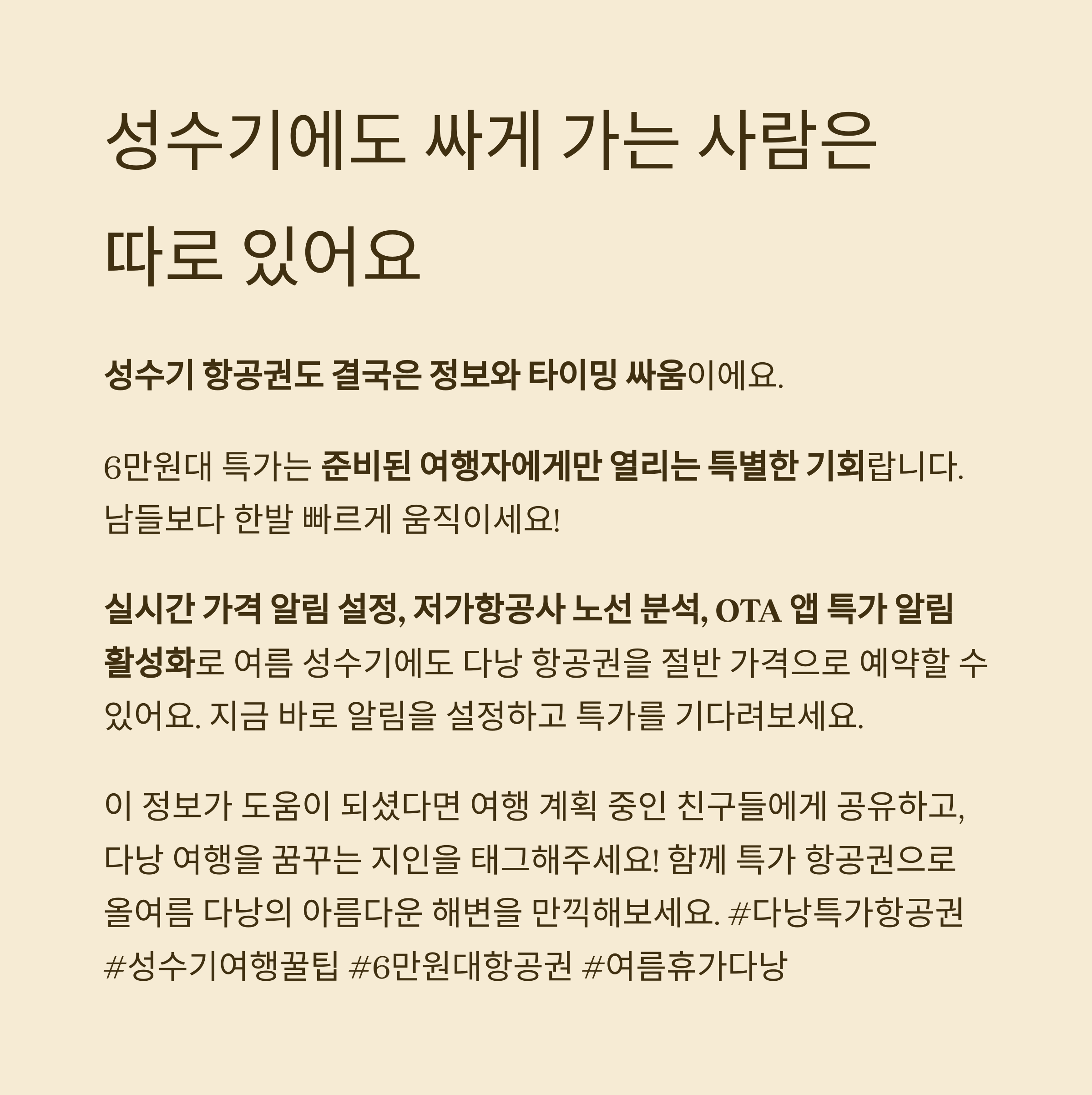 결론: 성수기에도 싸게 가는 사람은 따로 있어요