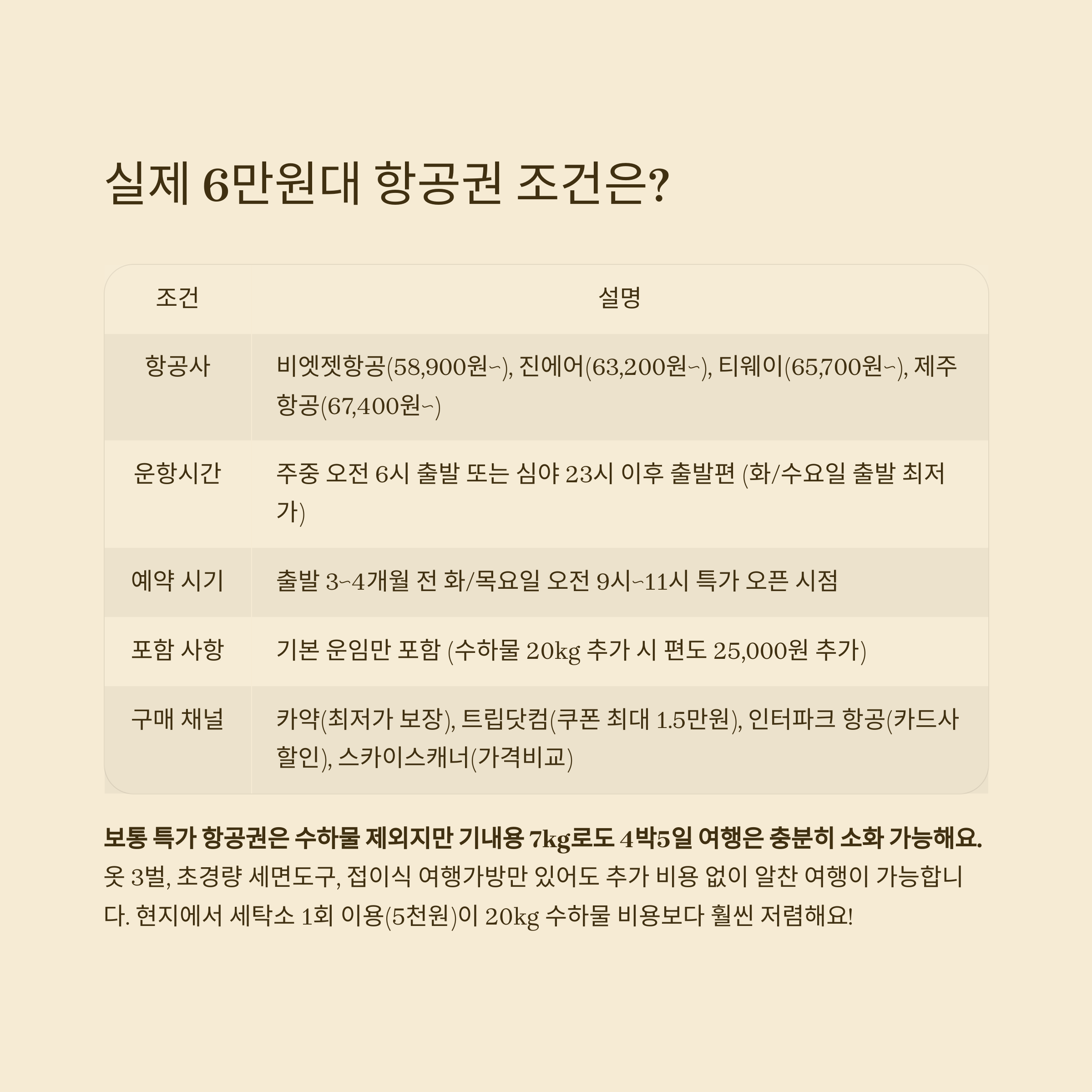 | 포함 사항 | 기본 운임 (수하물 미포함) |