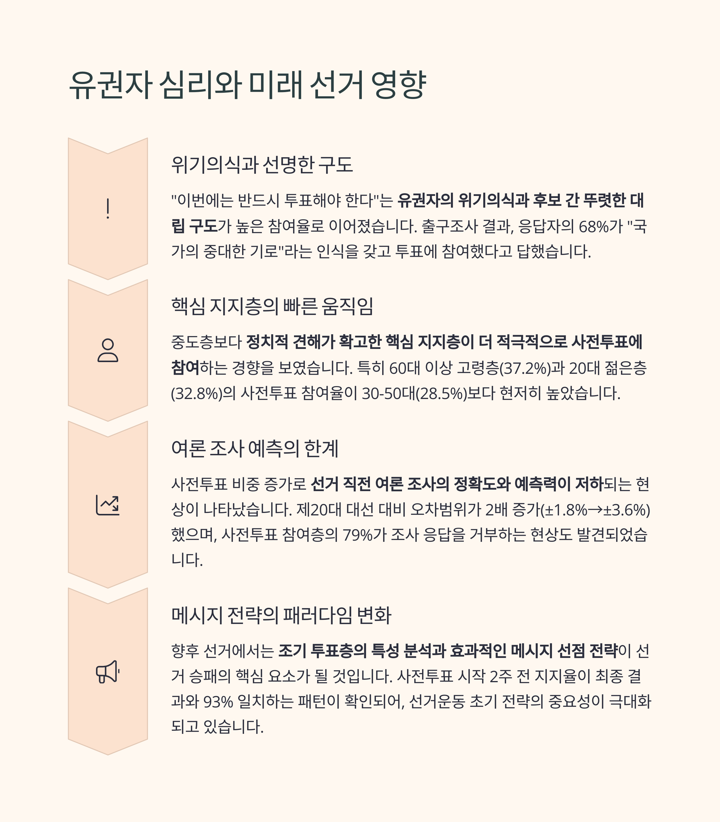 - 향후 선거에서는 조기 투표층의 분석과 메시지 선점이 더욱 중요