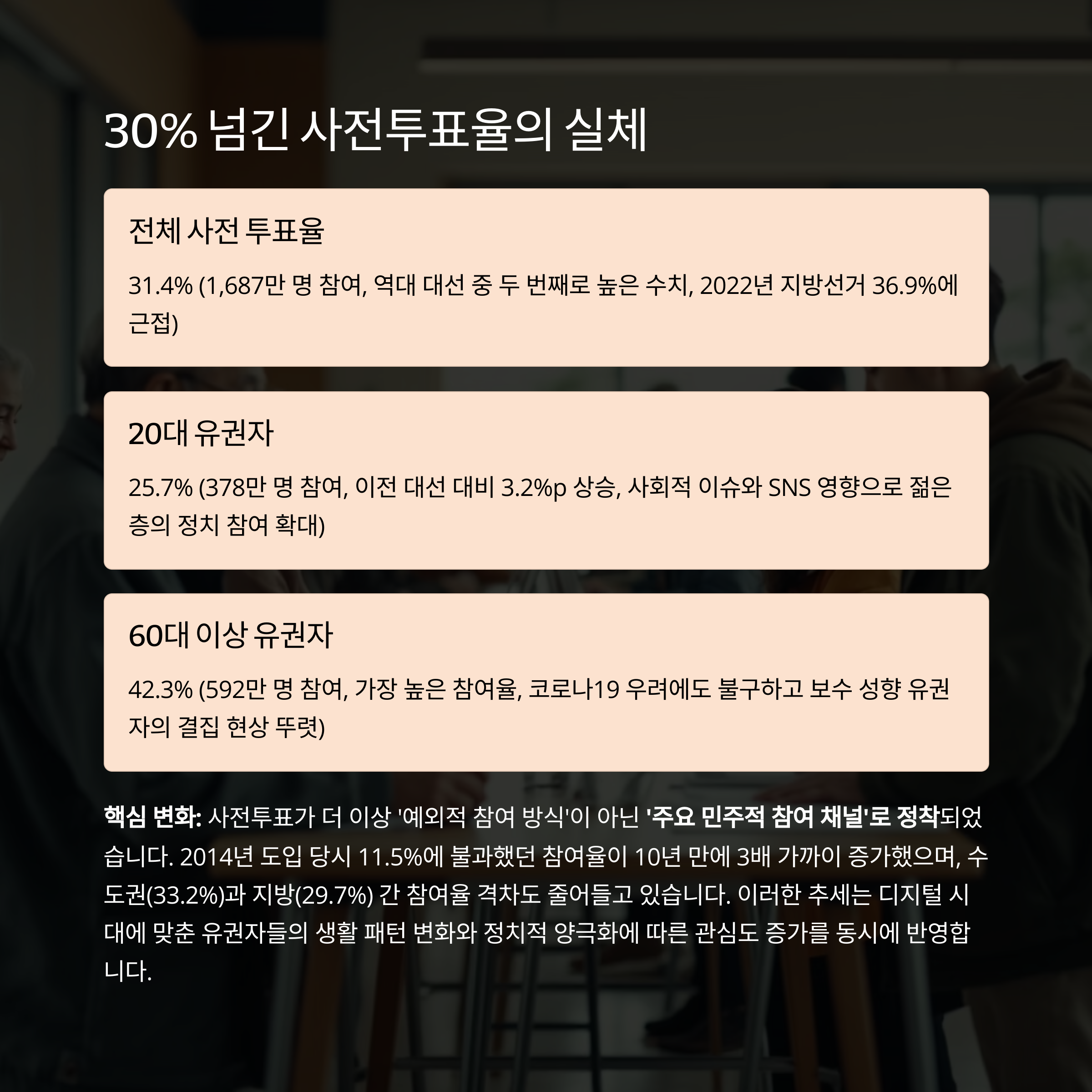 핵심: 사전투표가 이제 ‘특수한 방식’이 아니라 ‘일상적 참여 수단’으로 자리잡음