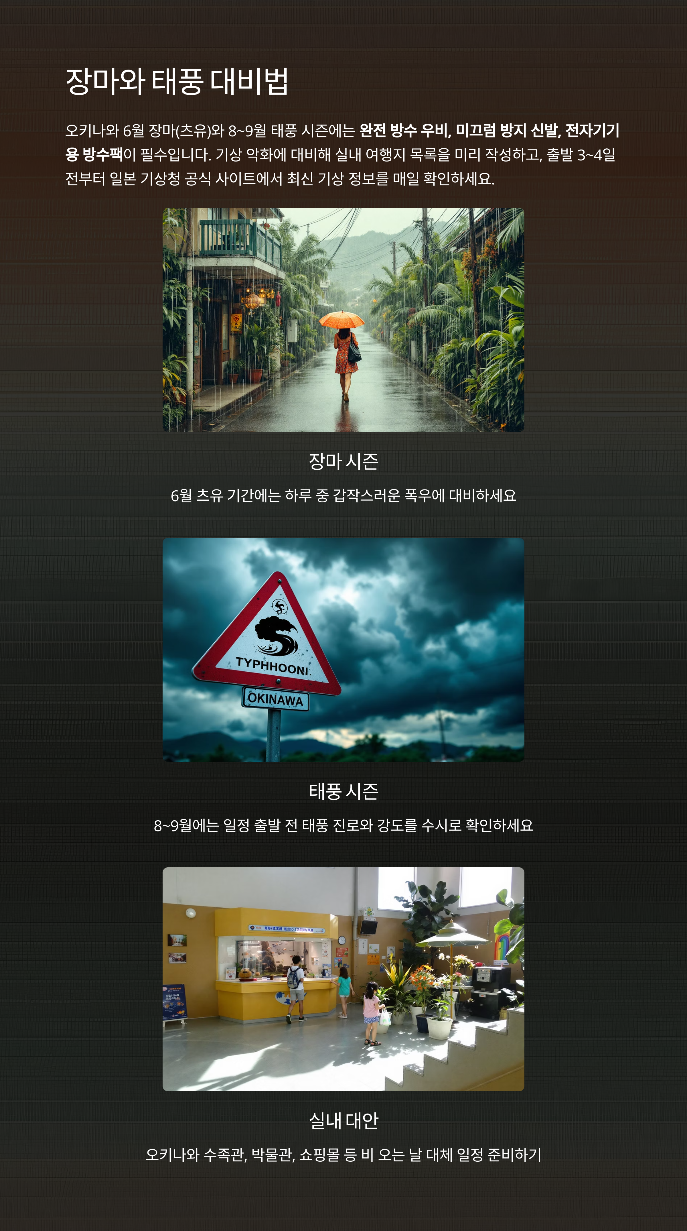 오키나와는 6월 장마와 8~9월 태풍이 자주 발생합니다.