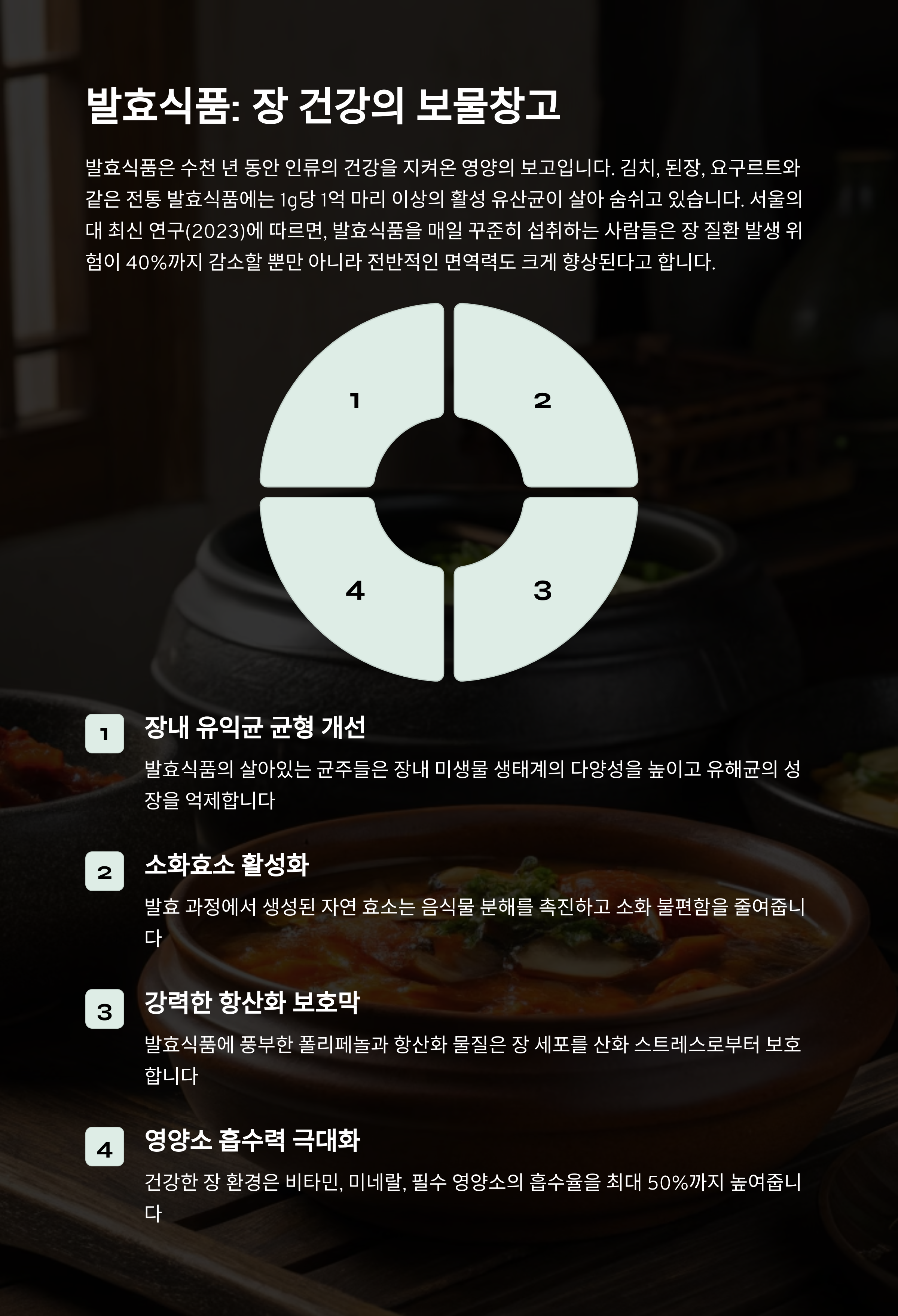 발효 과정에서 생성되는 유익균이 장 건강에 큰 역할을 합니다.