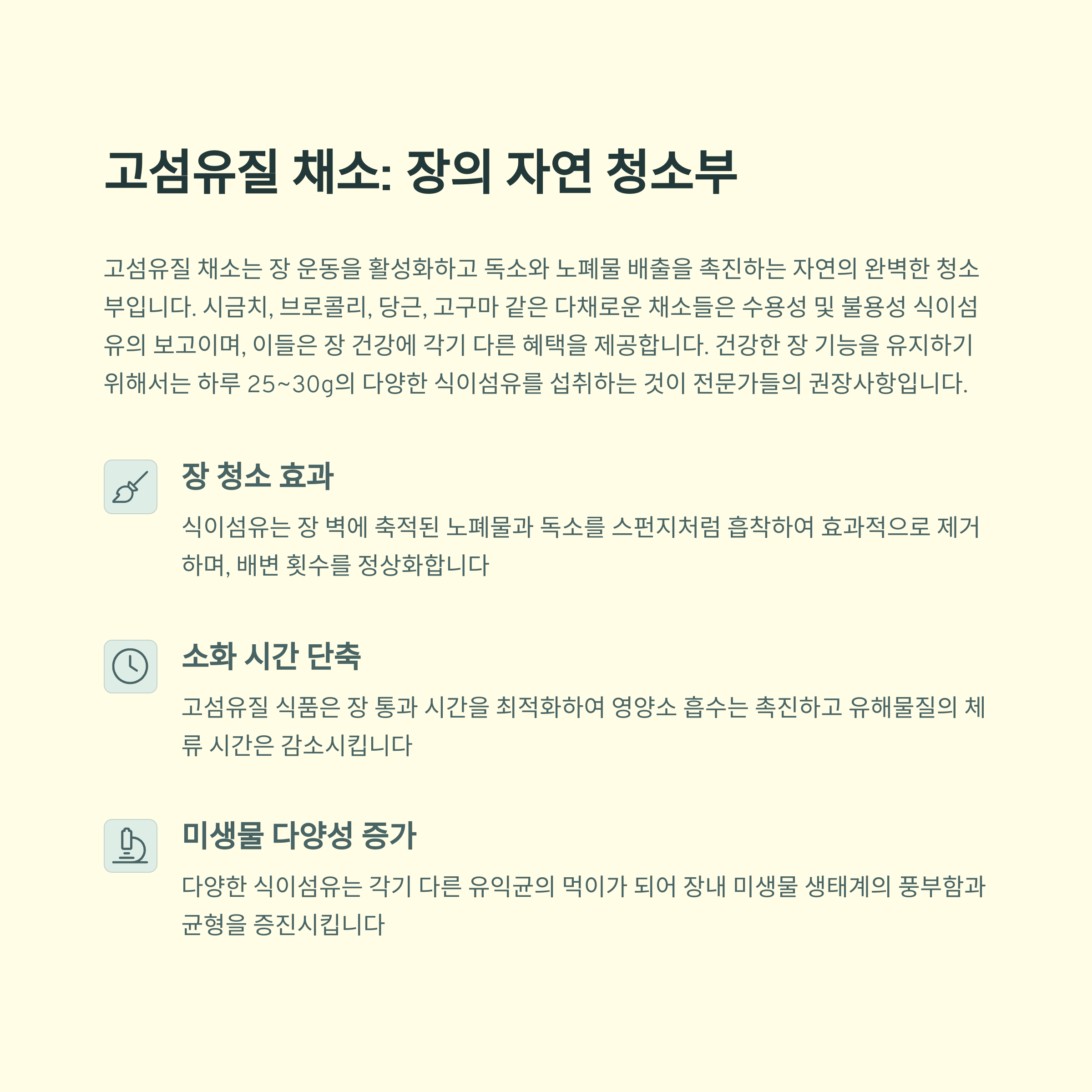 고섬유질 채소, 장 운동을 촉진하는 천연 솔루션