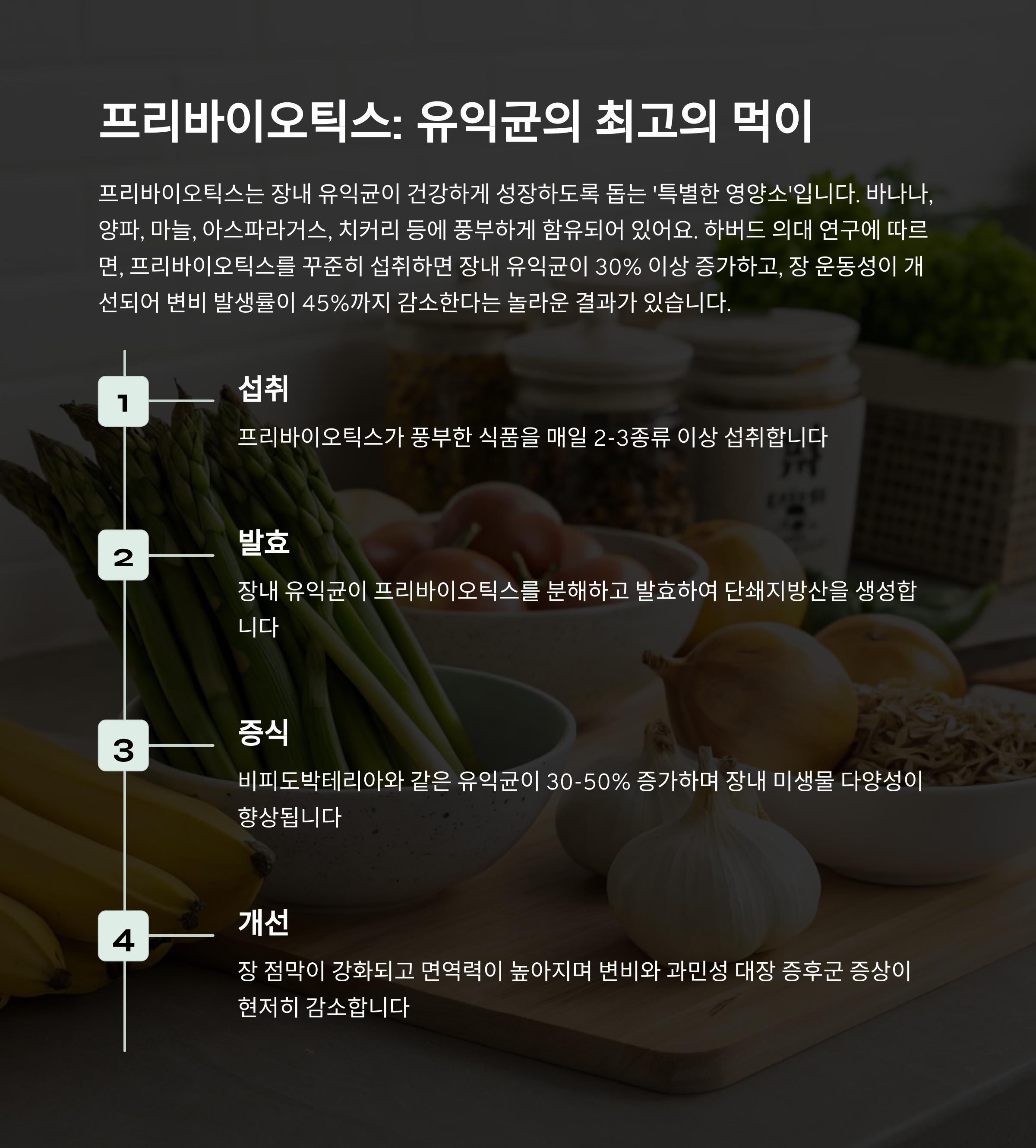 "장내 미생물 균형을 맞추고 면역 시스템을 강화해줍니다."