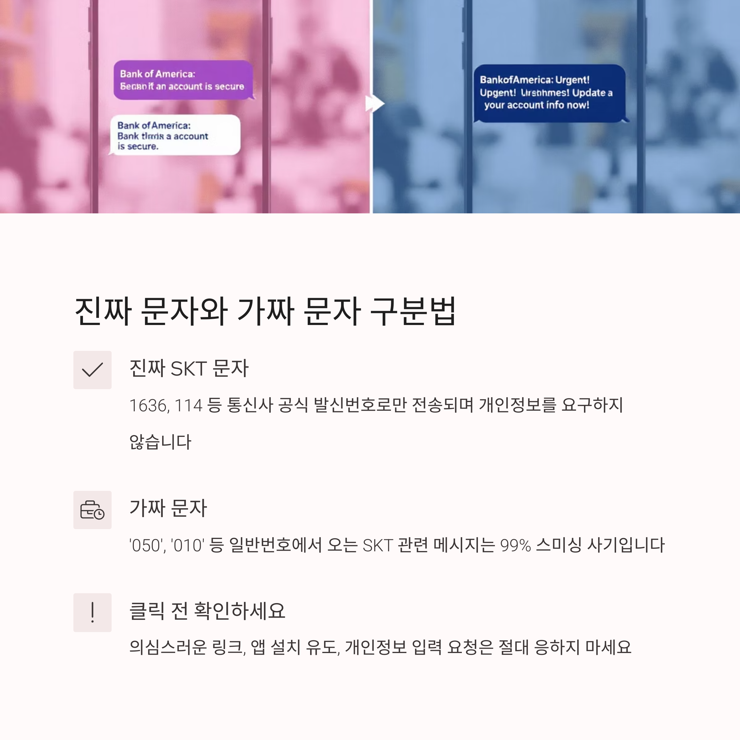 - Q: 진짜 SKT 문자인지 어떻게 구분하나요?