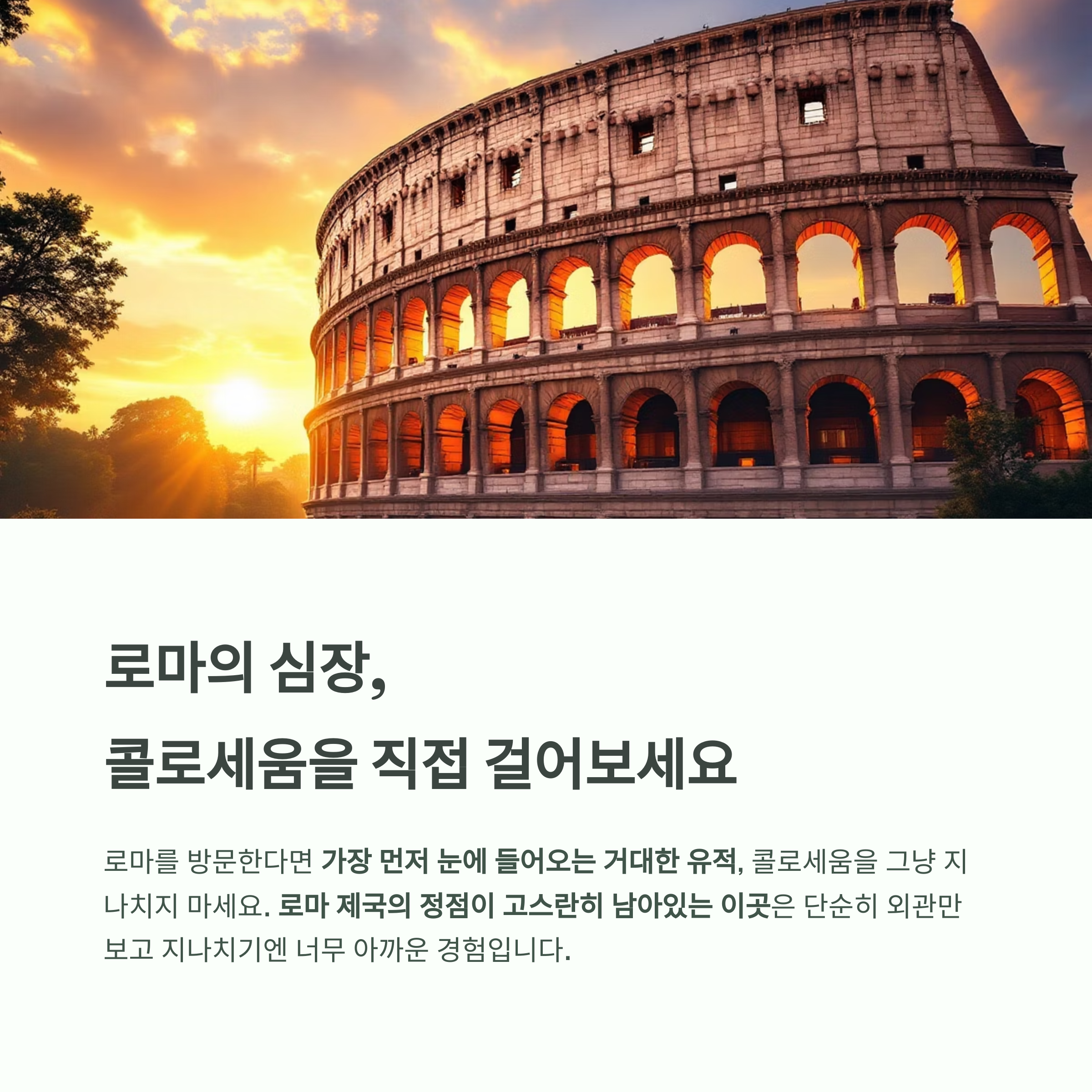 콜로세움은 멀리서 보기보다, 직접 걸어야 하는 곳이에요.