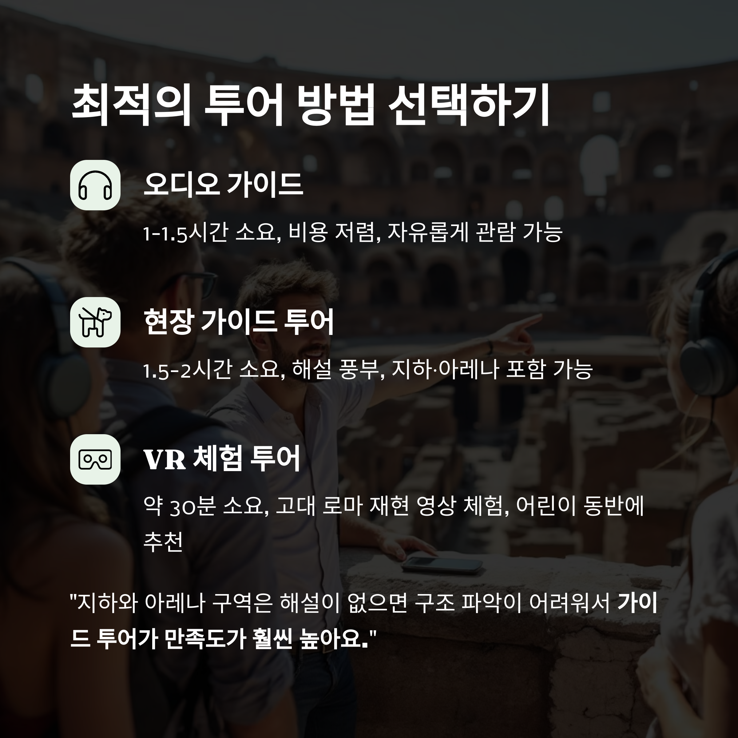 | VR 체험 투어 | 약 30분 | 고대 로마 재현 영상 체험, 어린이 동반에 추천 |