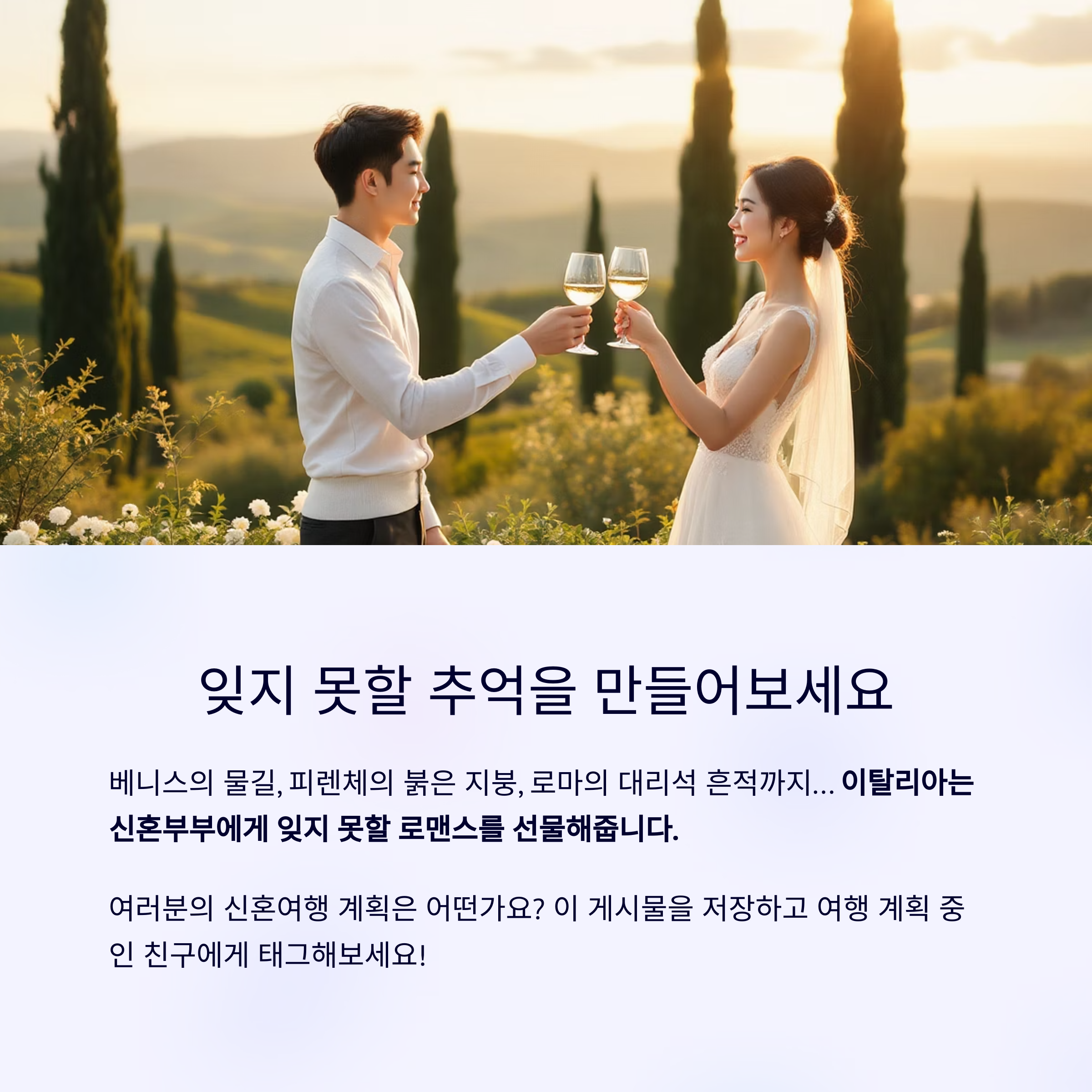 이탈리아는 신혼부부에게 잊지 못할 로맨스를 선물해줘요.