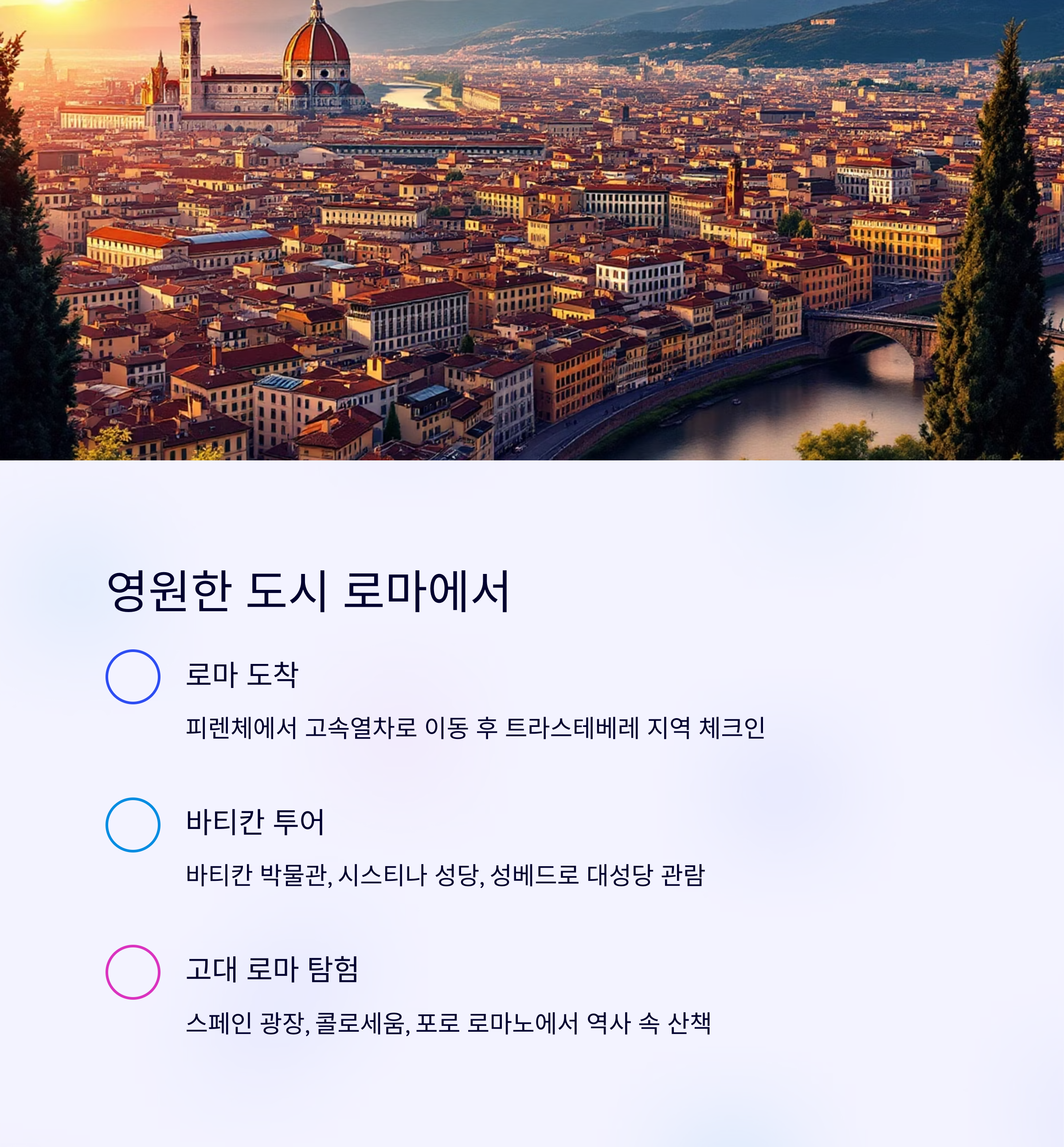 | 6일차 | 로마 | 바티칸 투어 + 고대 유적 |
