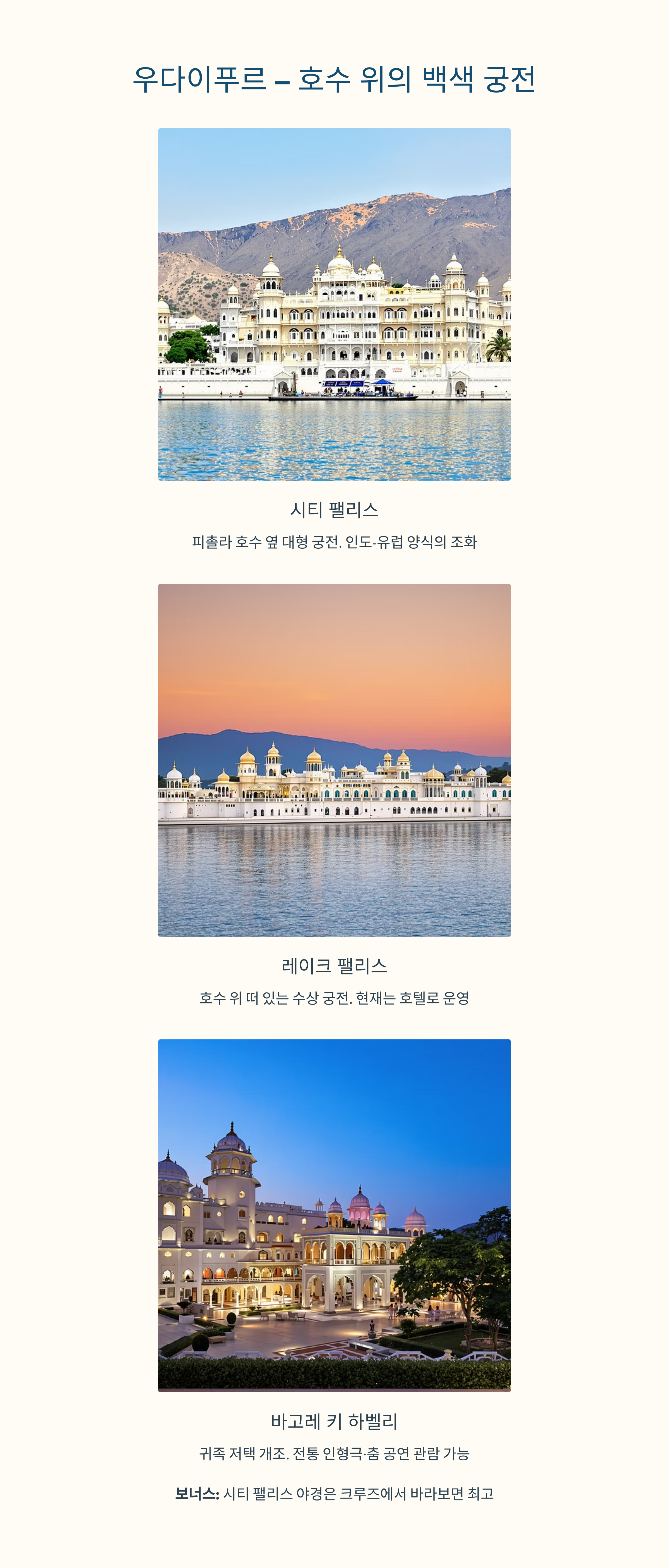 2. 우다이푸르 – 호수 위의 백색 궁전