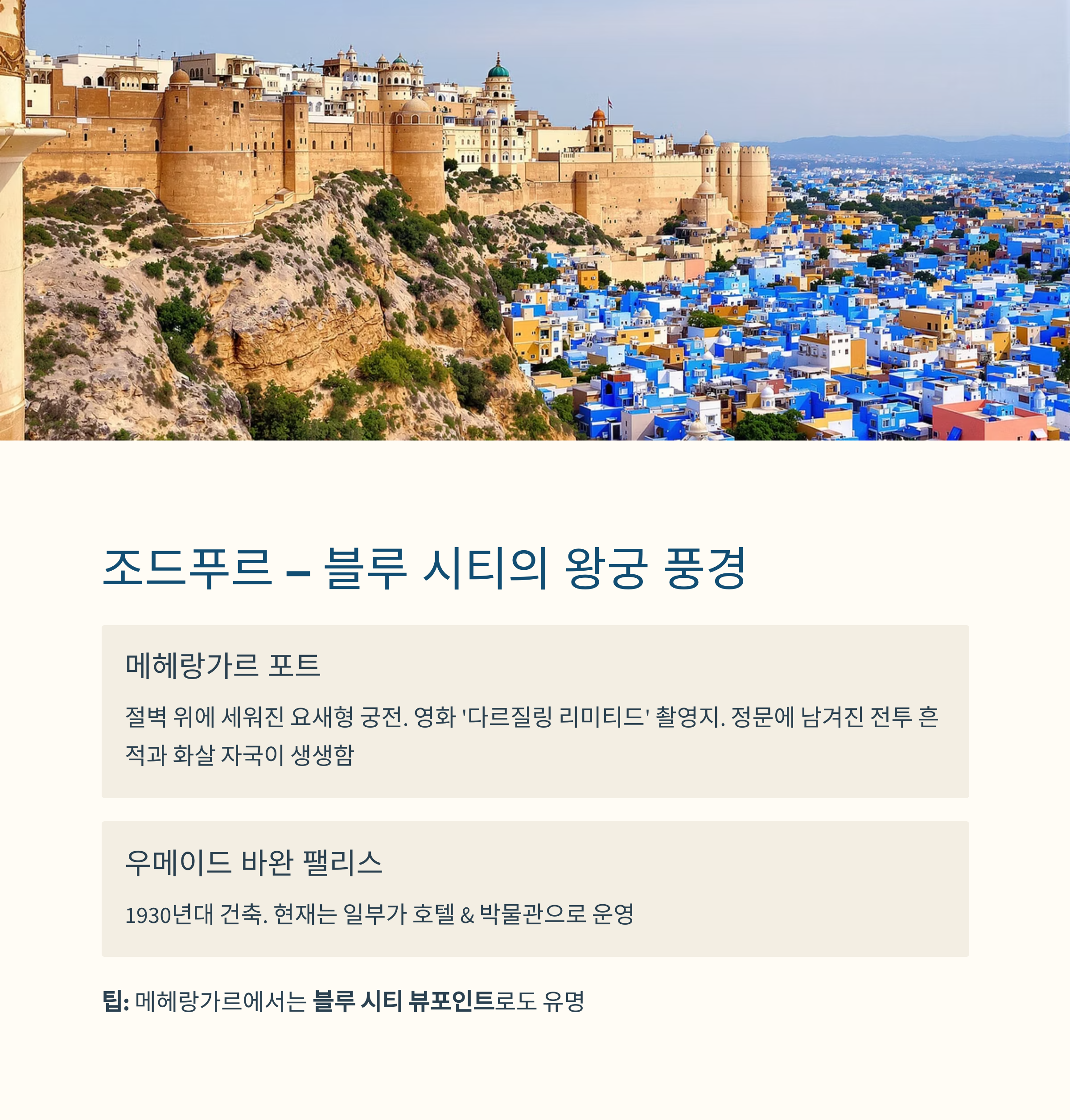 이번 글에서는 라자스탄의 대표 궁전 여행지와 실제 투어 팁을 공유할게요.