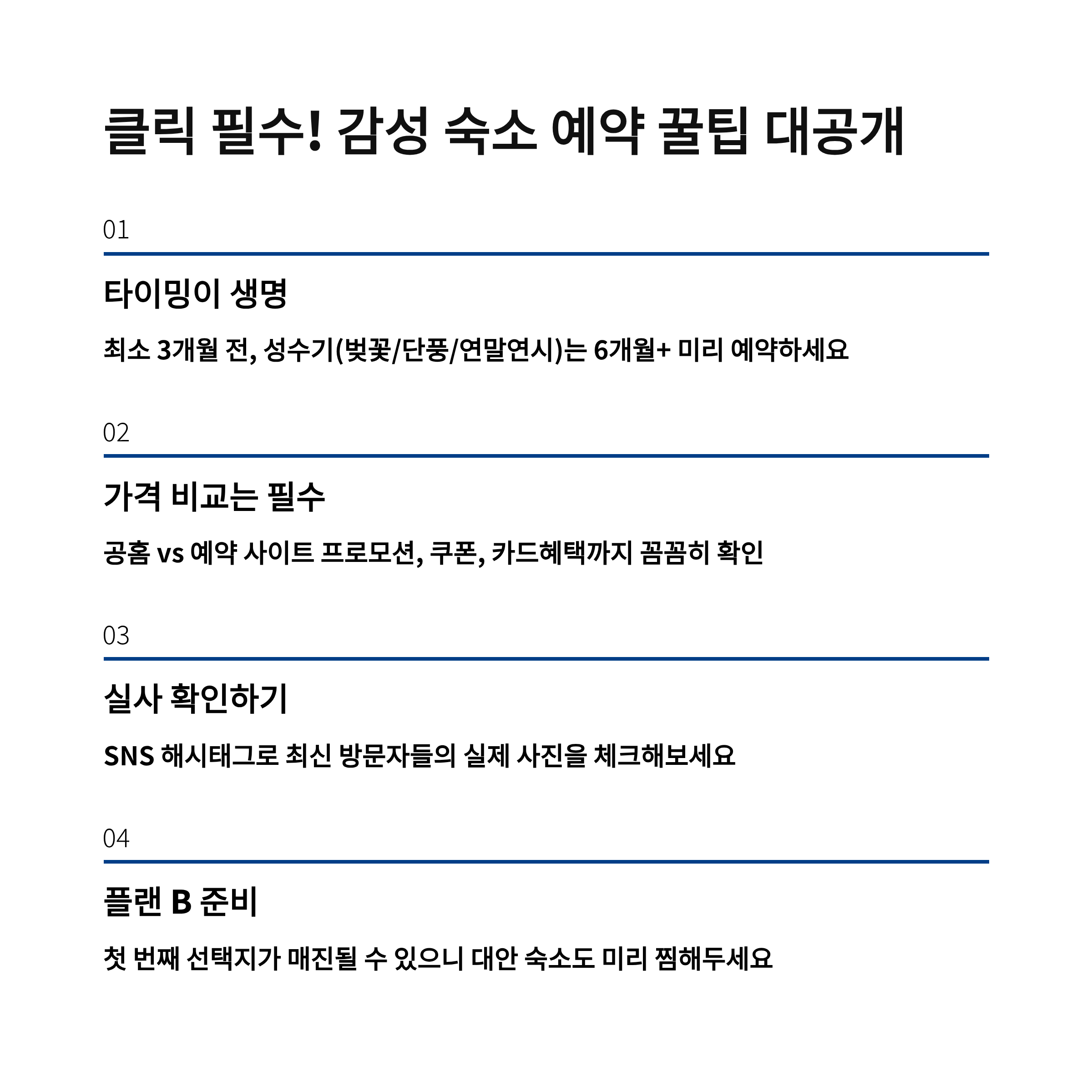 💡 감성 숙소, 현명하게 예약하는 꿀팁