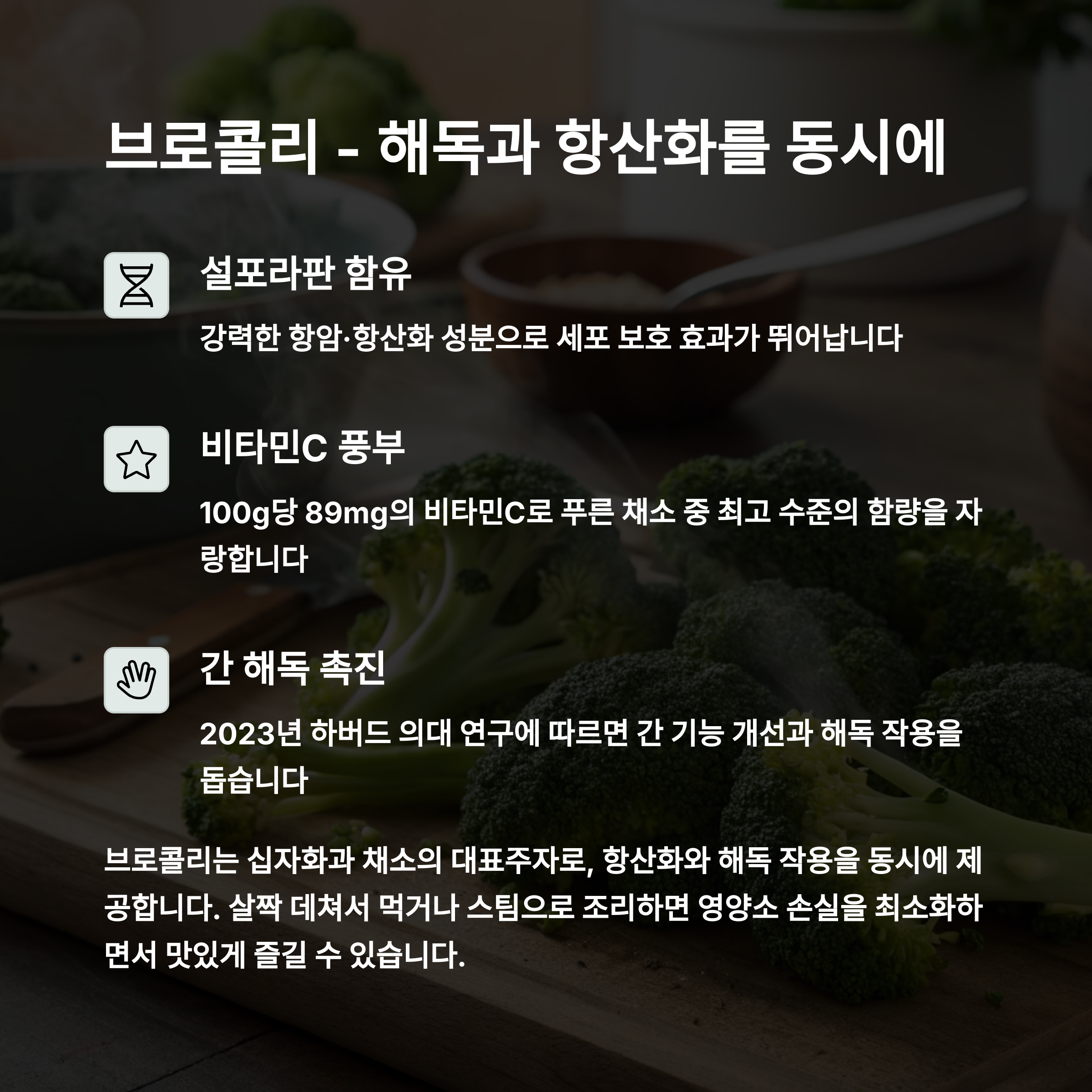 브로콜리, 해독과 항산화를 동시에