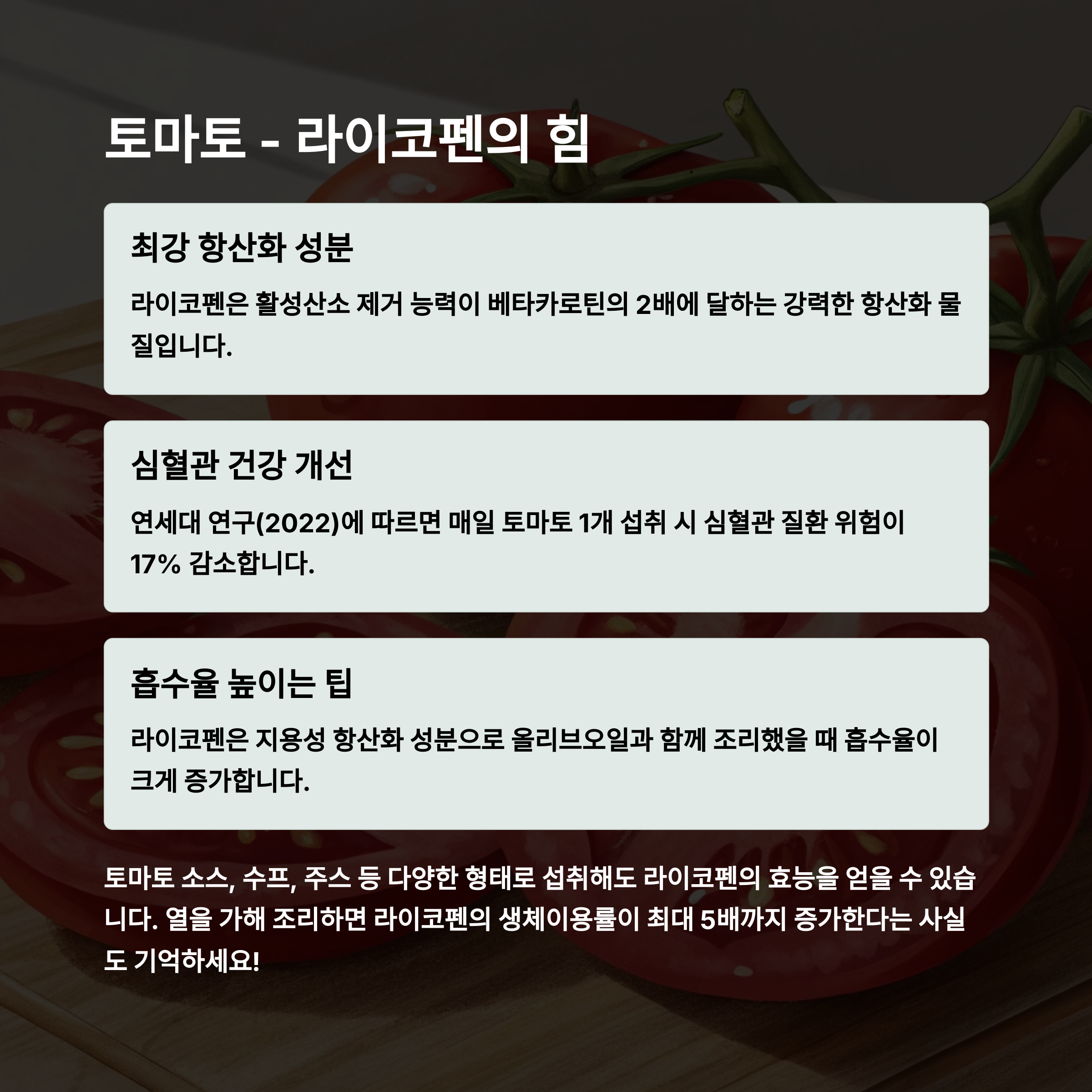 "특히 익힌 토마토는 라이코펜 흡수율이 더 높아집니다."